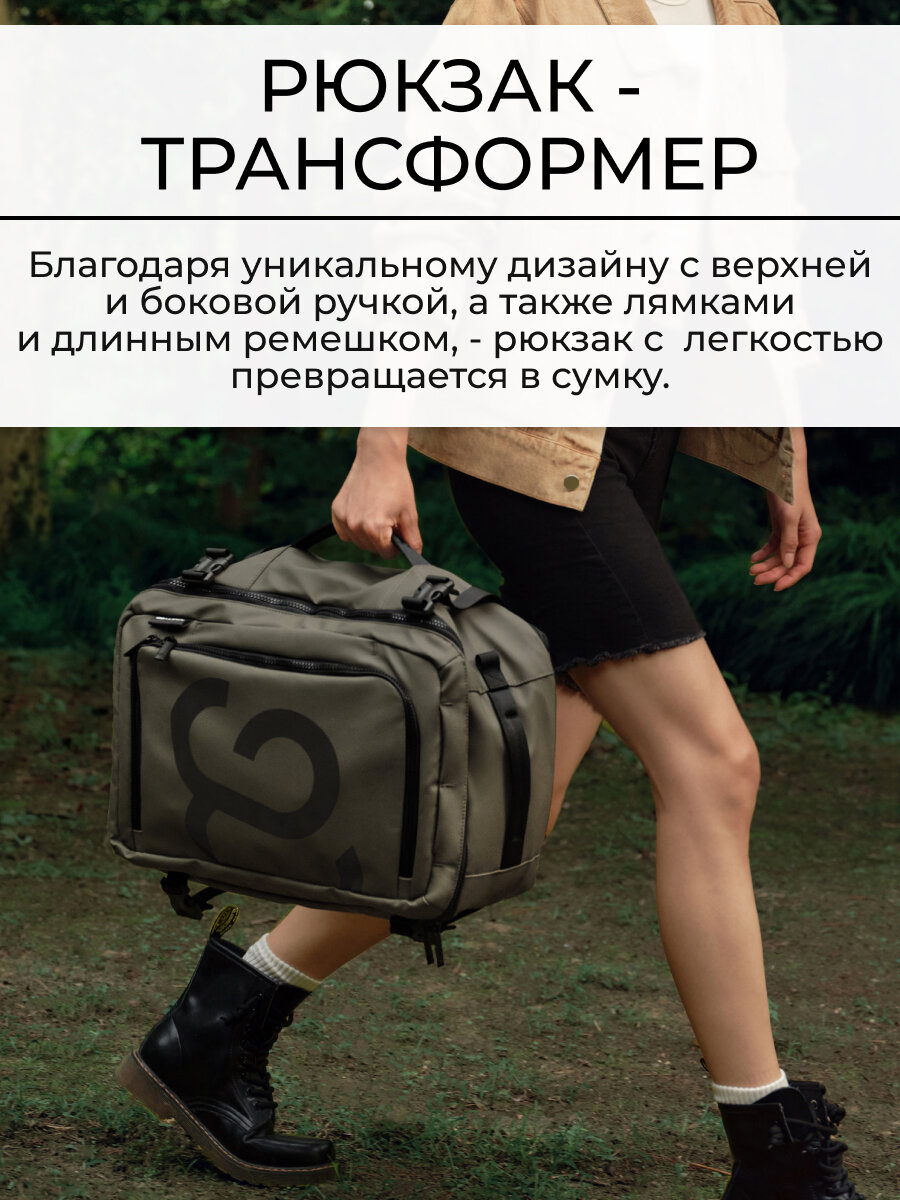 Благодаря уникальному дизайну c верхней и боковой ручкой, а также лямками и длинным ремешком, - рюкзак с легкостью превращается в сумку формата TOTE.