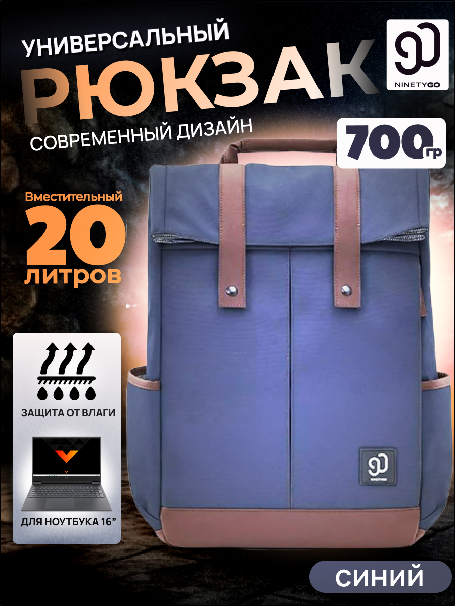 Рюкзак Ninetygo, защита от воды и царапин, карман для ноутбука до 16″, полиэстер, синий: сравнение цен, характеристики, фото, актуальное наличие и цены.