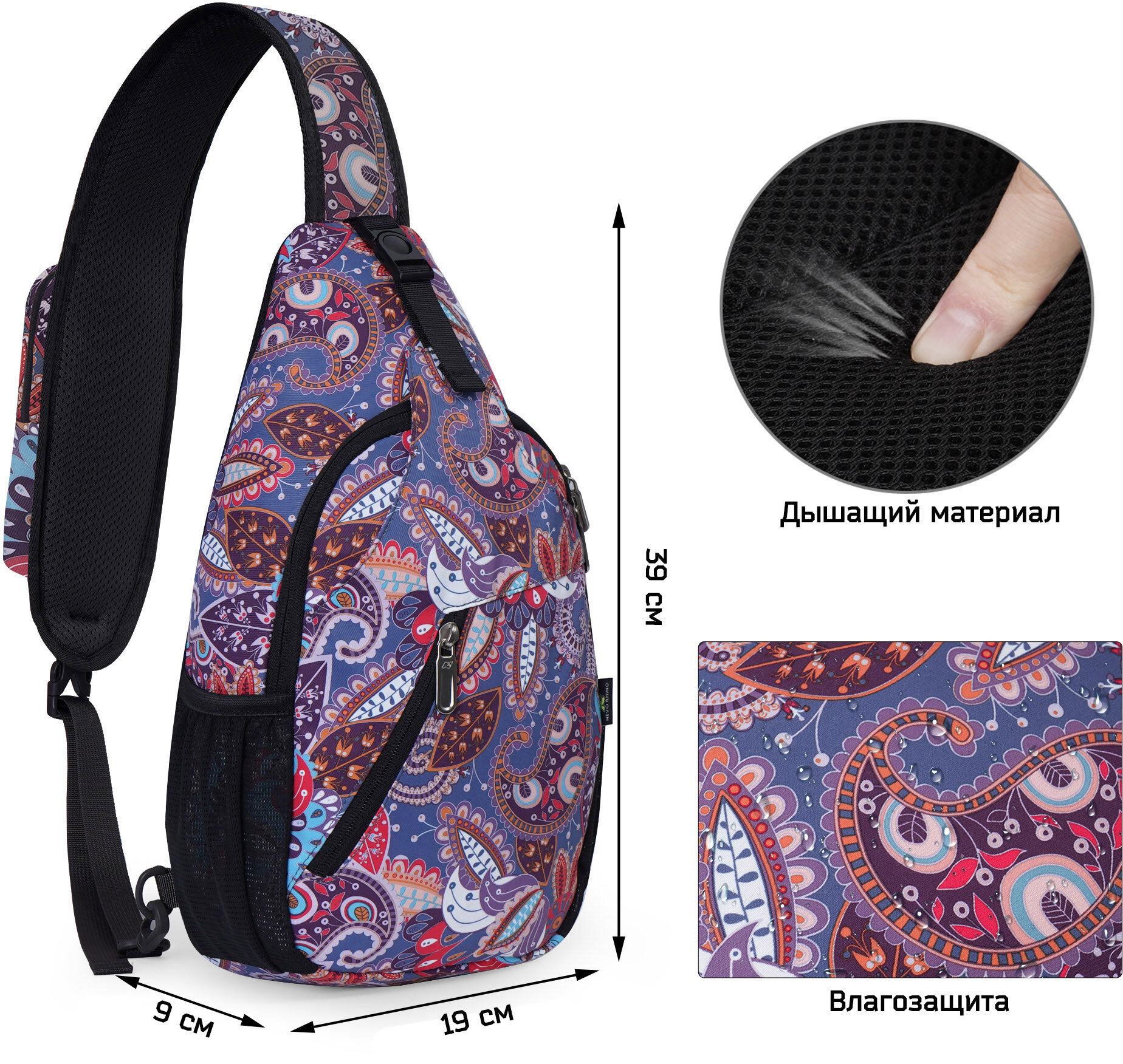 Эргономичный однолямочный рюкзак-слинг с карманом для смартфона. Кармана для смартфона: 9х17,5 см. Подходит для большинства смартфонов до 6,5" Размеры рюкзака 39х19х9см Объем 5 л Вес: 320 гр.