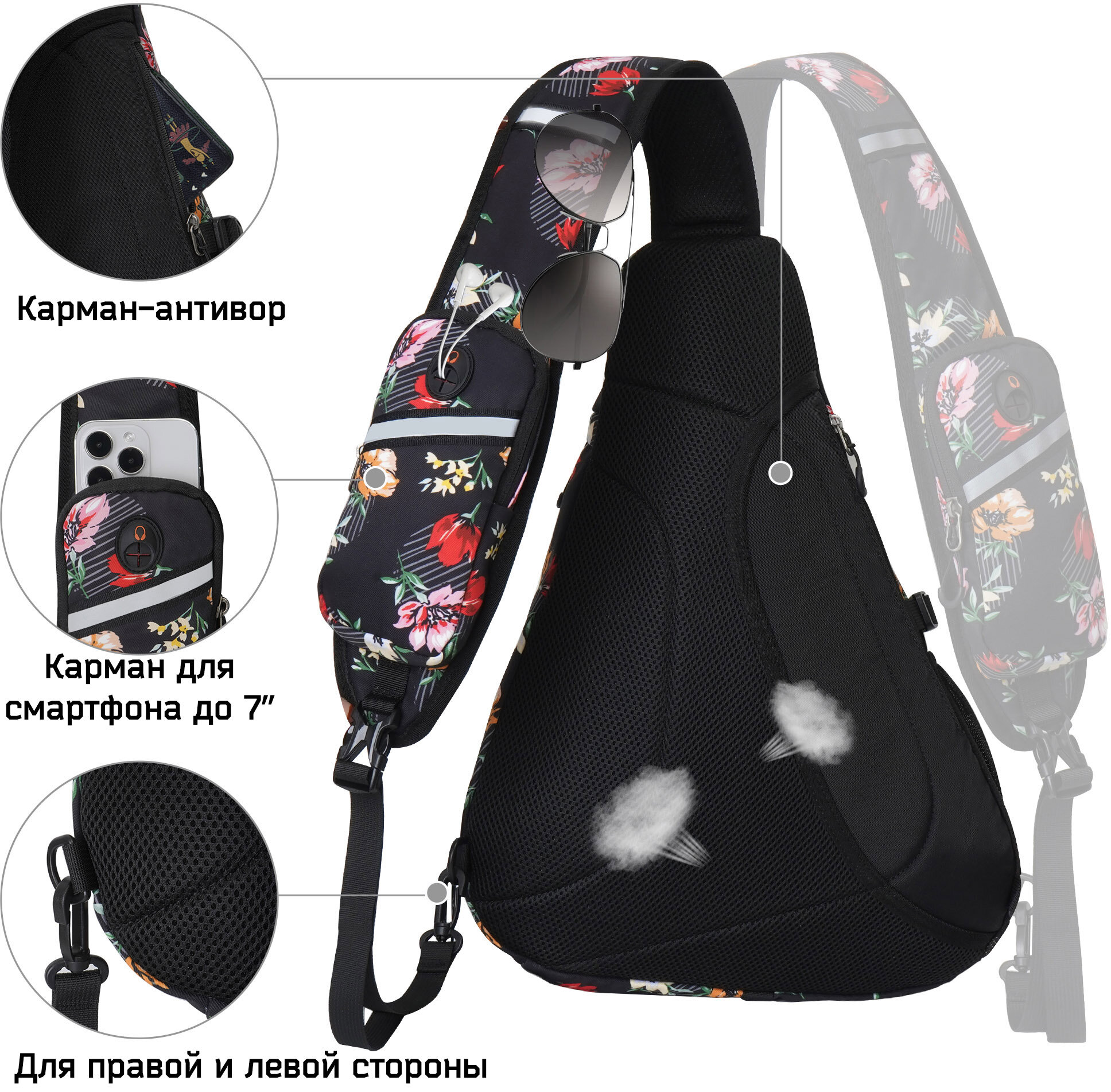 Функциональный однолямочный рюкзак с карманом для смартфона. Удобная анатомическая форма в виде треугольника очень удобна для однолямочного типа ношения рюкзака. Передний фронтальный карман на молнии с карабином для ключей Потайной карман для документов и кошелька в спинке рюкзака Карман для смартфона (до 7") на лямке рюкзака Внутренний карман вмещает планшет до 10,2" Внешний эластичный шнур для одежды Боковой карман-сетка для бутылки Светоотражающие элементы Возможность смены лямки для левши и правши. Крепление на карабине. Вес рюкзака 340 гр. Размеры рюкзака: 50х35х13 см