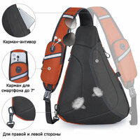 Функциональный однолямочный рюкзак с карманом для смартфона. Удобная анатомическая форма в виде треугольника очень удобна для однолямочного типа ношения рюкзака. Передний фронтальный карман на молнии с карабином для ключей Потайной карман для документов и кошелька в спинке рюкзака Карман для смартфона (до 7") на лямке рюкзака Внутренний карман вмещает планшет до 10,2" Внешний эластичный шнур для одежды Боковой карман-сетка для бутылки Светоотражающие элементы Возможность смены лямки для левши и правши. Крепление на карабине. Вес рюкзака 340 гр. Размеры рюкзака: 50х35х13 см