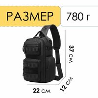 Сумка через плечо Ozuko сшита из износостойкого материала: оксфорд. Ткань практически не подвержена мелким механическим повреждениям и истиранию. Кроме того, на его внешнюю поверхность нанесено водоотталкивающее покрытие: влага собирается на поверхности каплями и просто стекает с ткани, а не впитывается. Небольшой дождь не намочит ваши вещи. Длину лямки можно свободно регулировать, чтобы рюкзак через плечо мужской плотно сидел на плече. Плечевой ремешок можно пристегнуть к карабину как на левую, так и на правую сторону. Лямка обшита мягким, пористым материалом, что обеспечивает свободную циркуляцию воздуха. Поэтому на плече не останутся мокрые следы после того, как вы снимете рюкзак. Размеры сумки кросс боди Ozuko – 37х22х12 см, а вес – 780 г. Внутри 1 отделение с карманами разного размера. Оно вмещает все необходимые в повседневной жизни вещи. В нем находится несколько карманов открытого и закрытого типа. Также в нем предусмотрен специальный отсек для переноски телефона. Спереди сумки кросс боди предусмотрен карман на молнии для ключей и гаджетов. На спинке спрятан потайной карман, в который можно положить документы и деньги. По бокам предусмотрены карманы на молнии для различных вытянутых предметов. На лямке находится специальное крепление для размещения солнечных очков и мини-карман, вмещающий пластиковую карту. Спереди по всей внешней поверхности расположены петли, за которые удобно цеплять карабины с мелкими предметами. Молнию рюкзака слинг мужского не получится открыть незаметно. Кодовый замок находится сверху. Чтобы расстегнуть молнию, придется ввести трехзначный код, и замок откроется. Поэтому заглянуть внутрь, пока рюкзак висит на спине, просто невозможно. Отделения: Потайное отделение Для зонта Карман с сеткой Отделение для мобильного телефона Боковой карман для бутылки воды Особенности: Кодовый замок Скрытый карман на спинке Открывается на 180 градусов Воздухопроницаемая спинка Вентилируемые лямки