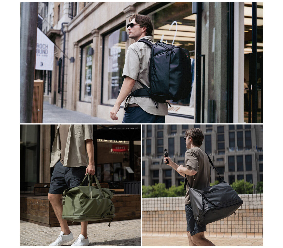 OneMo Travel Backpack – большой рюкзак-трансформер от PGYTECH для путешествий и рабочих командировок. Может использоваться как классический рюкзак (2 лямки, съемный пояс), как сумка через плечо или как сумка-баул с 2 ручками. Полезный объем: 35 литров основное отделение + 15 литров дополнительный верхний карман (при ношении в виде сумки). Внутрь с легкостью помещается 15-16" ноутбук, сменная одежда, гигиенические принадлежности и различные аксессуары. Рюкзак использует систему сменных извлекаемых вставок для камеры (Camera Inserts), вы можете выбрать ту, которая подходит под ваш комплект оборудования. Вставки также можно использовать как самостоятельные сумки: к примеру, вы можете оставить рюкзак в багажнике машины, в номере отеля или в палаточном лагере, а дальше передвигаться с небольшой, легкой сумкой.