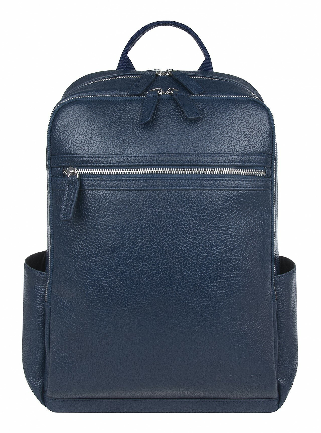 Рюкзак мужской с двумя отделениями на молнии. Внутри одного отделения потайной карман на молнии,отделение на липучке и два кармана. В другом отделении открытый карман.Снаружи спереди карман на молнии, сзади карман на молнии и по бокам открытые кармашки