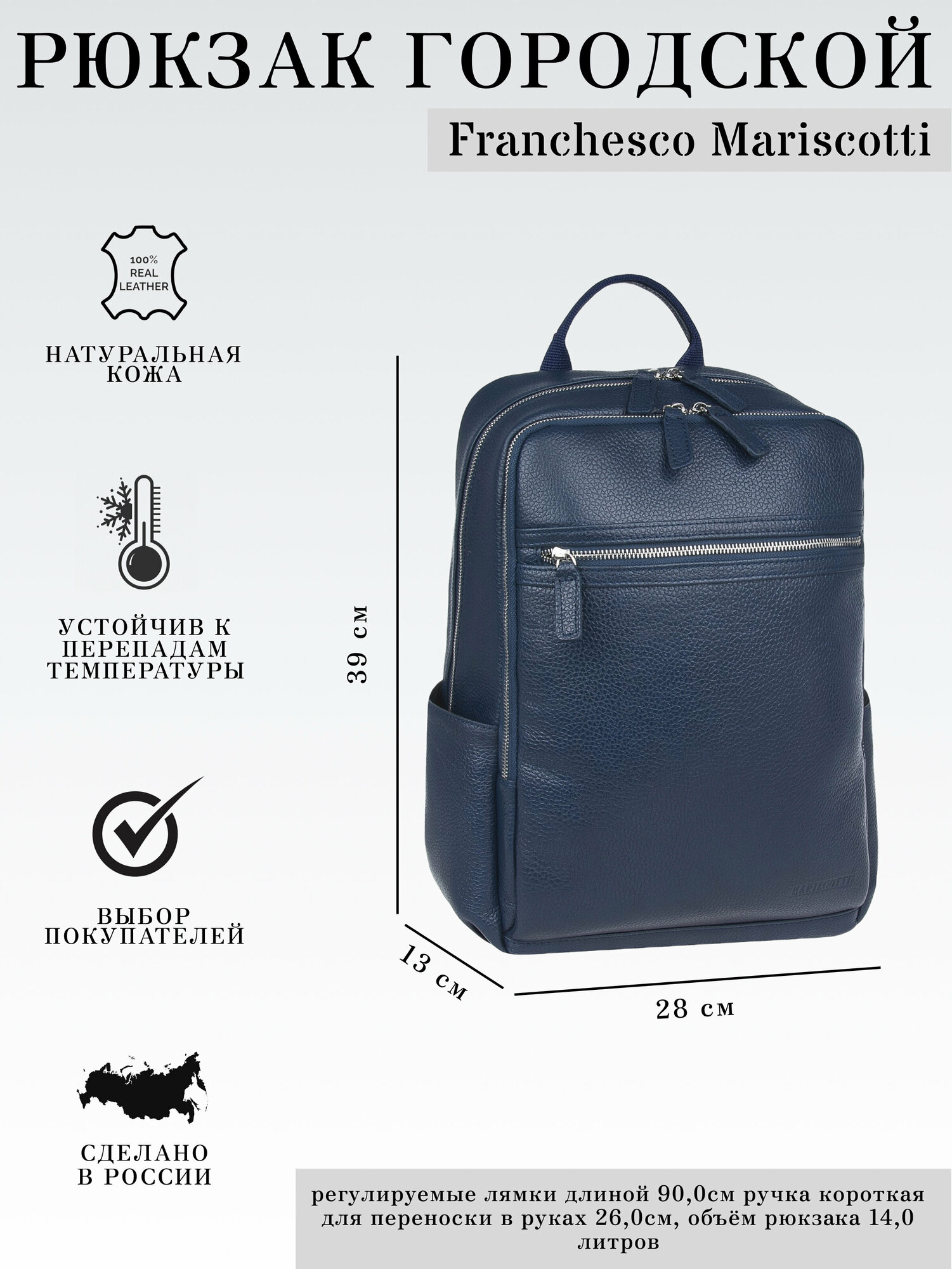 Таким образом, если вы ищете надежный и функциональный рюкзак, то этот вариант от Franchesco Mariscotti - идеальный выбор. Он не только выглядит стильно и элегантно, но и обеспечивает комфорт и удобство при использовании.