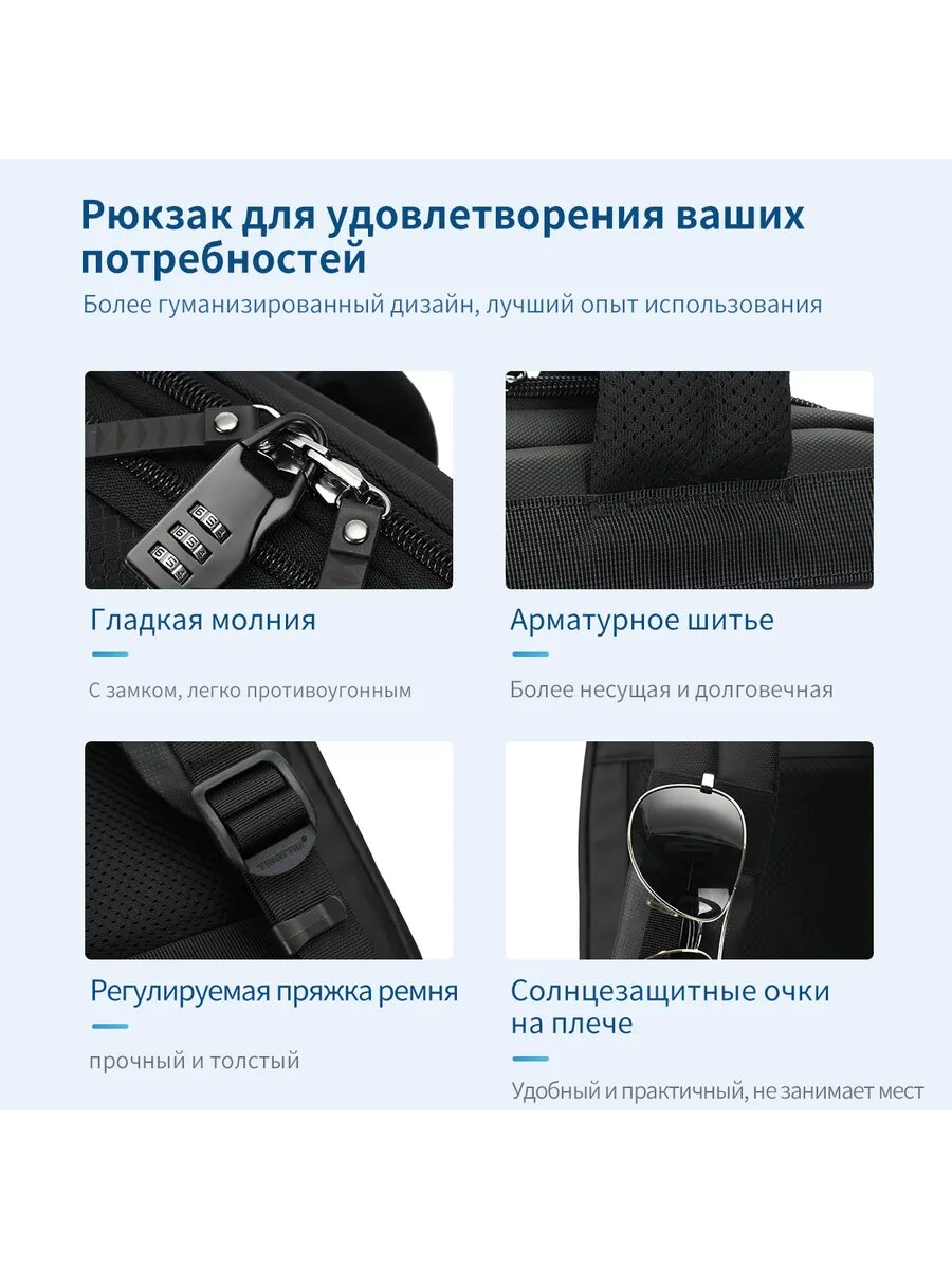 Рюкзак мужской/женский кожаный городской дорожный Bopai вместительный 27л, для ноутбука 15.6", водонепроницаемый, с USB зарядкой, взрослый/подростковый, черный