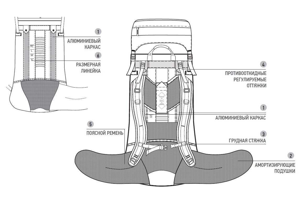 Узел регулировки высоты крепления плечевых лямок подвесной системы IBC; Два отделения, разделенные перегородкой на фастексах; Дополнительный доступ в основное отделениеСъёмный верхний клапан с карманом на молнии. Карабин для ключей в кармане; Эластичная стяжка на фронтальной части рюкзака для внешней развески снаряжения