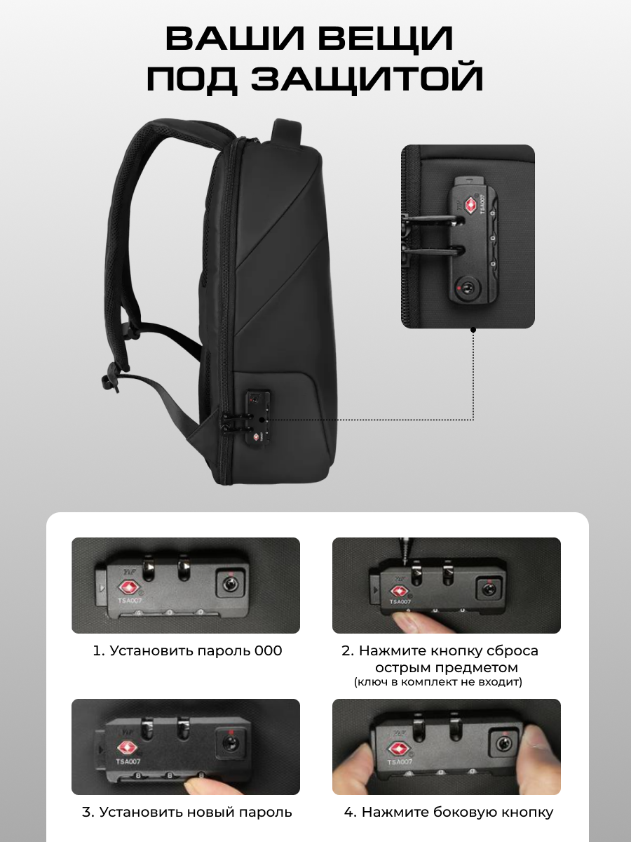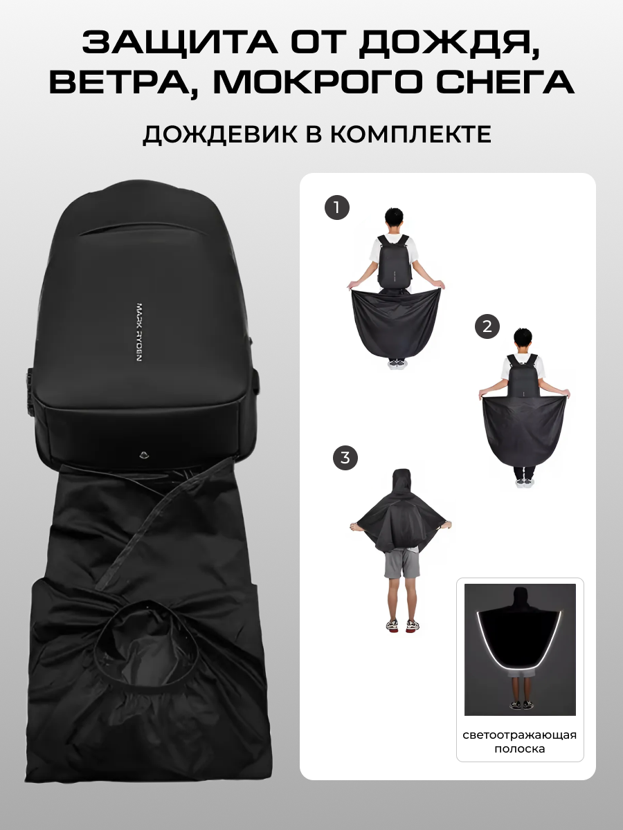 Купить Рюкзак мужской городской Mark Ryden MR9068YY для ноутбука 15.6″ с дождевиком, с кодовым замком, объем 17 л, унисекс с доставкой по всей России.