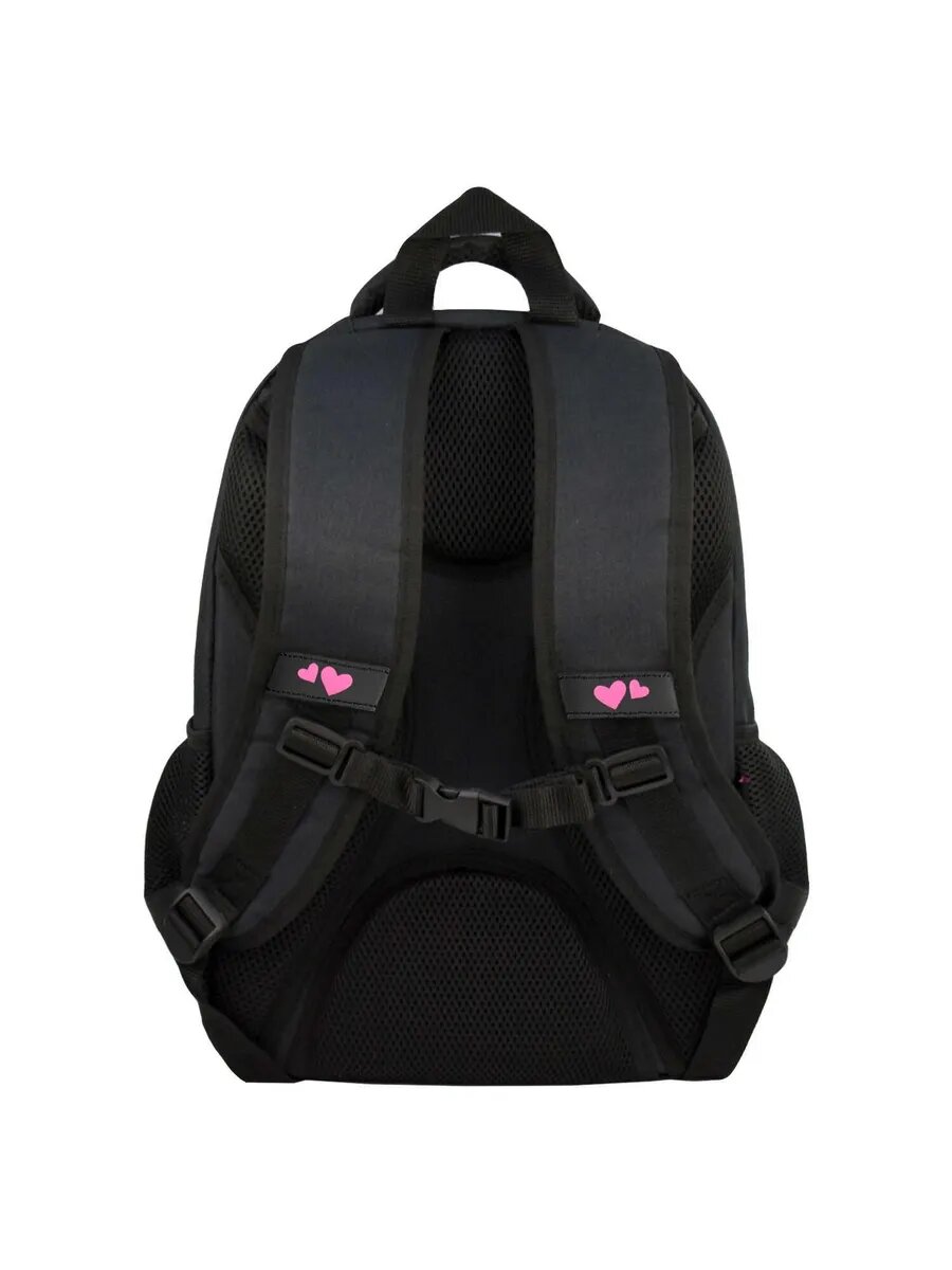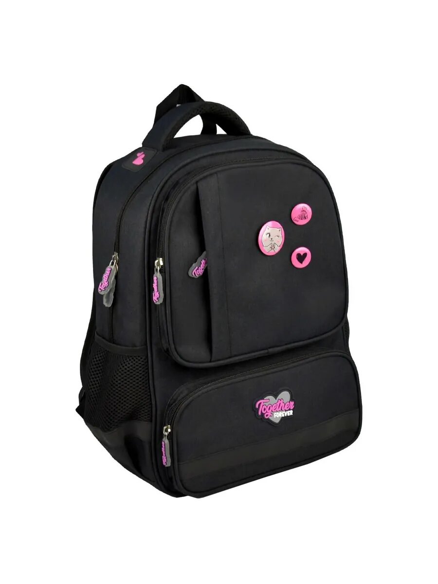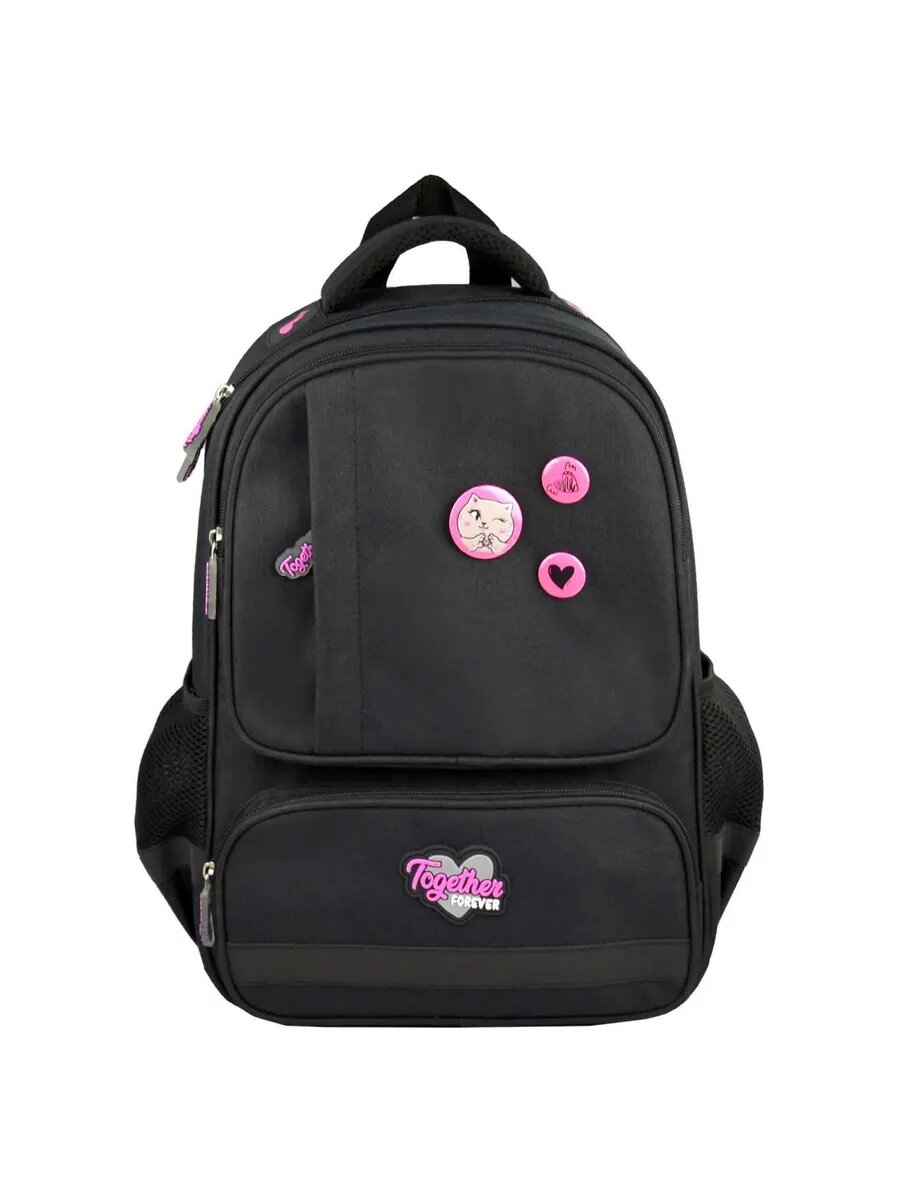 Купить Рюкзак с уплотнённой спинкой (феникс) 40см (со светоотражающими элементами) Озорная кошечка черный +мет значки (п/упаковка), 1 шт с доставкой по всей России.