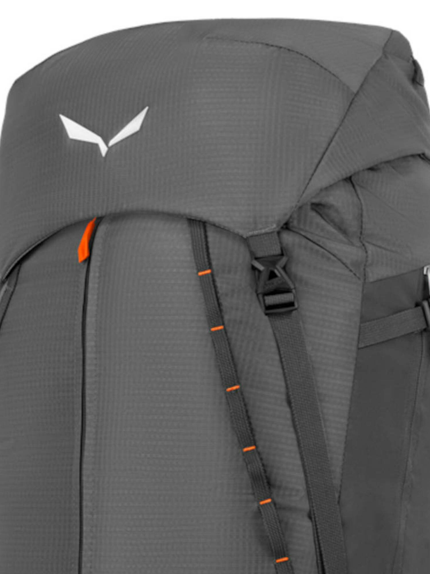 На поясе предусмотрен надёжный карман на молнии для ценностей, а снаружии имеется множество внешних креплений для треккинговых палок и другой экипировки, а также удобные стропы для крепления коврика снизу рюкзака, что освобождает внутреннее пространство. Рюкзак подготовлен для питьевой системы и совместим с держателем для фляги и чехлом для смартфона от SALEWA®. В комплекте идёт дождевик для защиты от осадков.