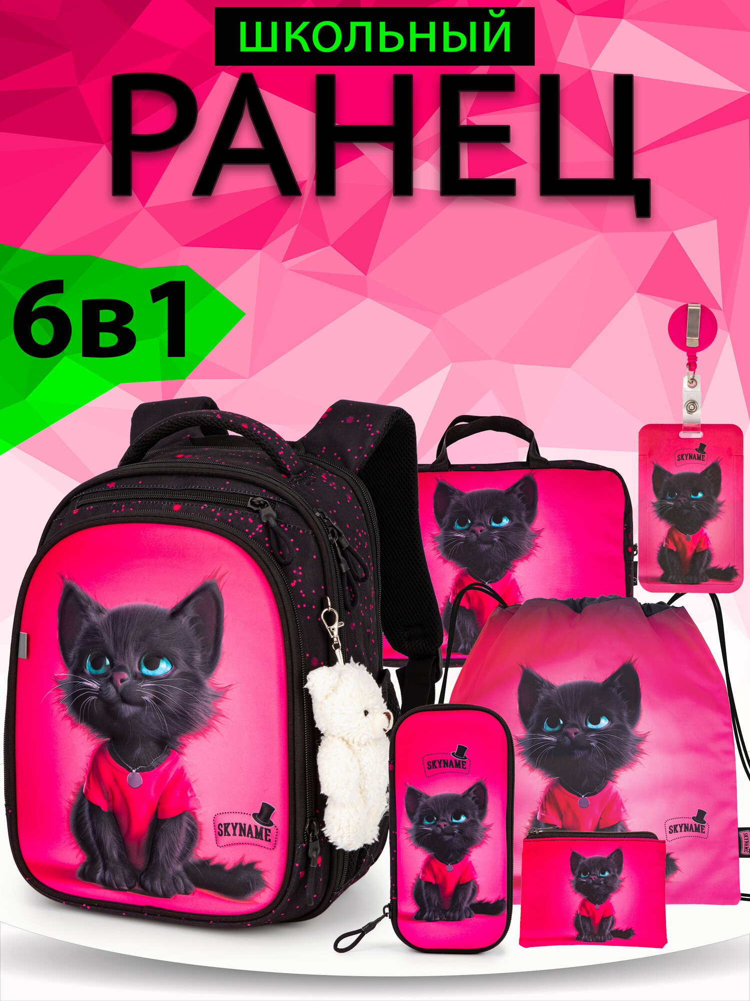 Купить Рюкзак школьный 16 л для девочки начальной школы, с анатомической спинкой, набор 6 в 1 + брелок в подарок, SkyName с доставкой по всей России.
