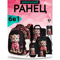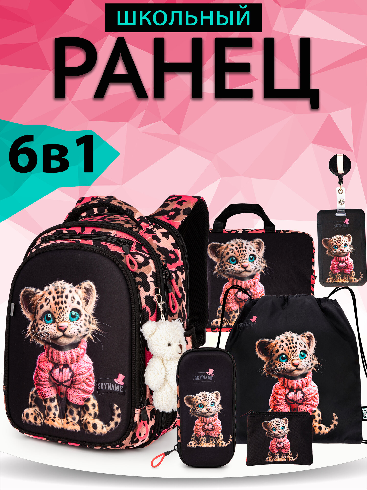 Купить Рюкзак школьный 16 л для девочки начальной школы, с анатомической спинкой, набор 6 в 1 + брелок в подарок, SkyName с доставкой по всей России.