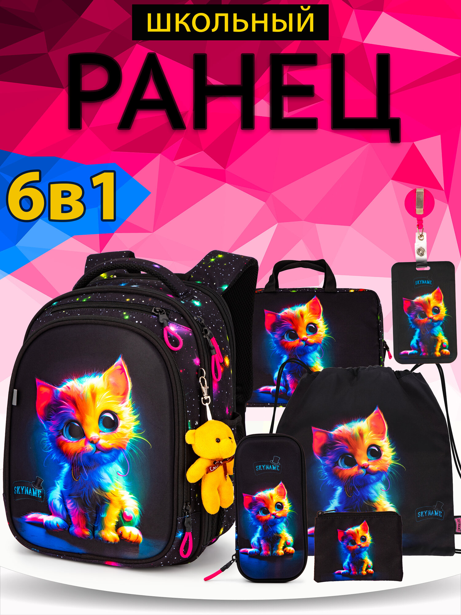 Рюкзак школьный 16 л для девочки начальной школы, с анатомической спинкой, набор 6 в 1 + брелок в подарок, SkyName: сравнение цен, характеристики, фото, актуальное наличие и цены.
