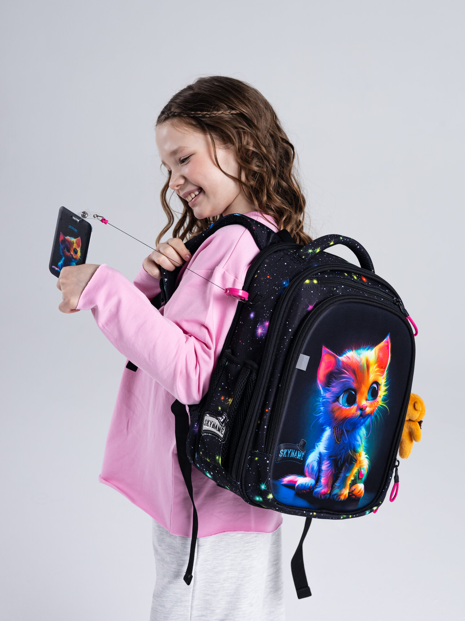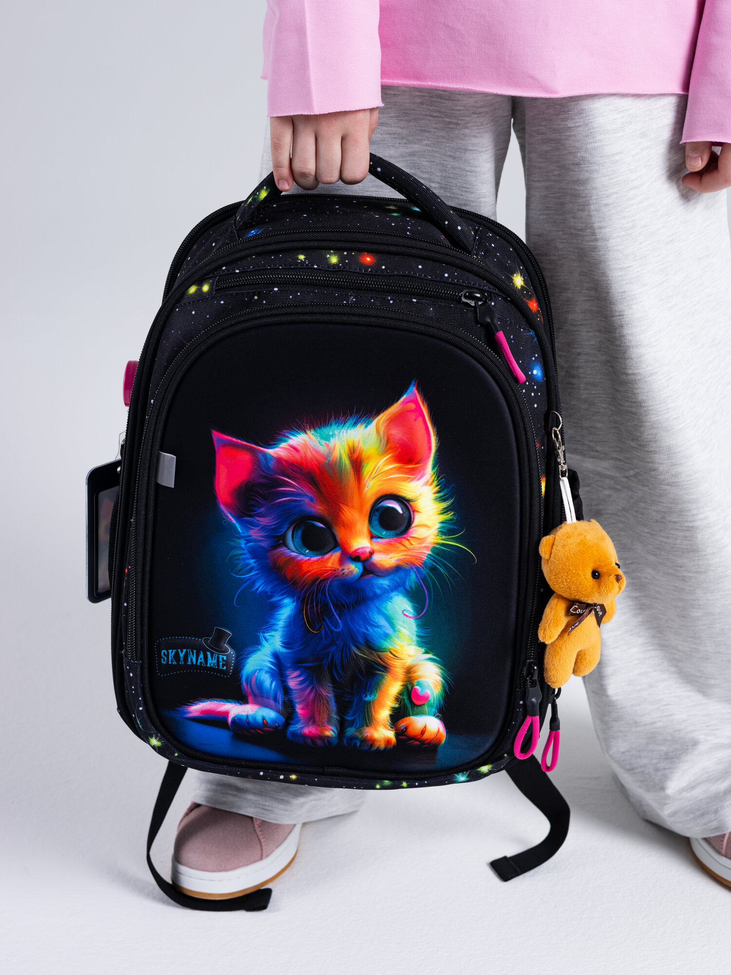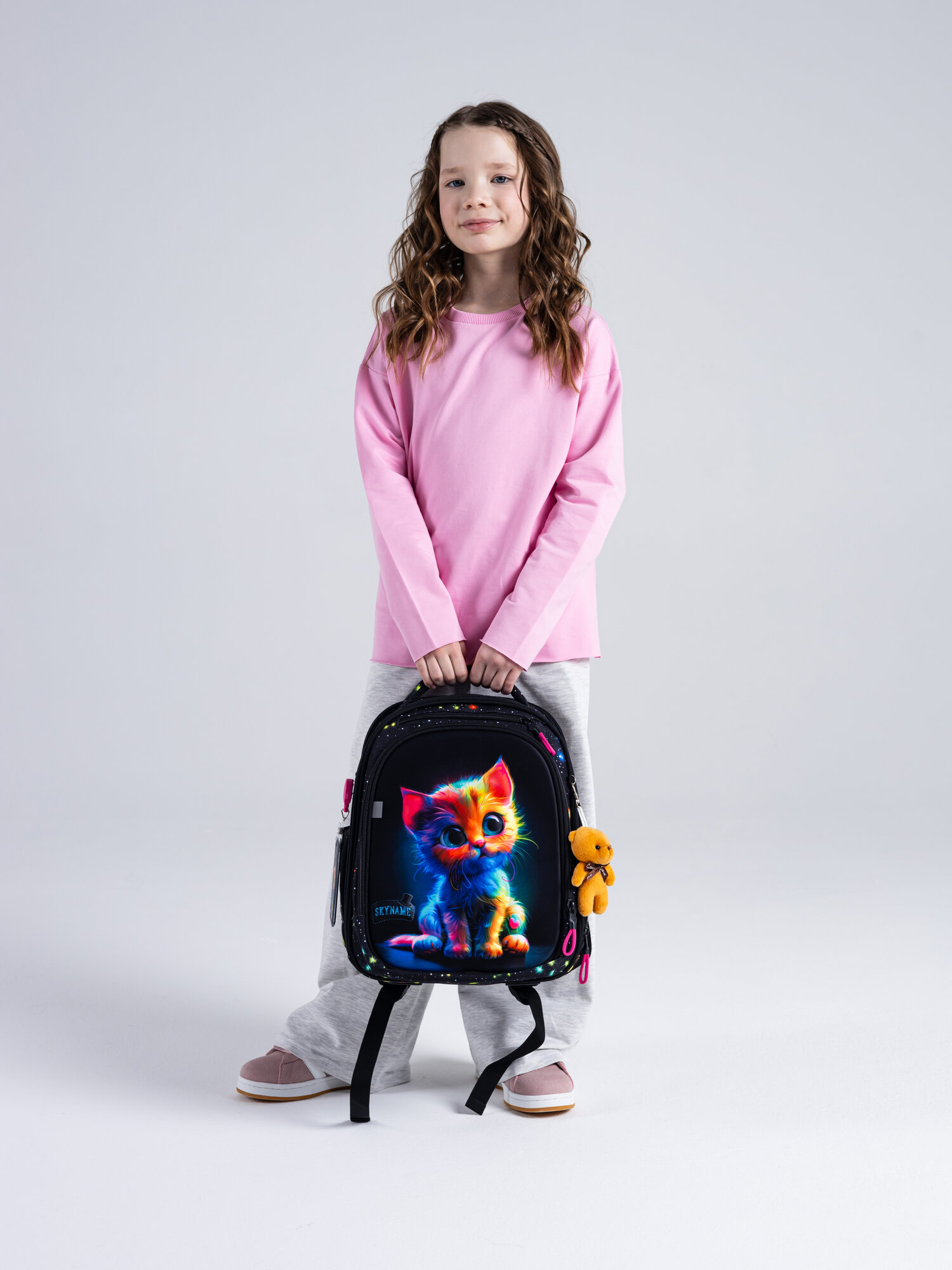 Рюкзак школьный 16 л для девочки начальной школы, с анатомической спинкой, набор 6 в 1 + брелок в подарок, SkyName