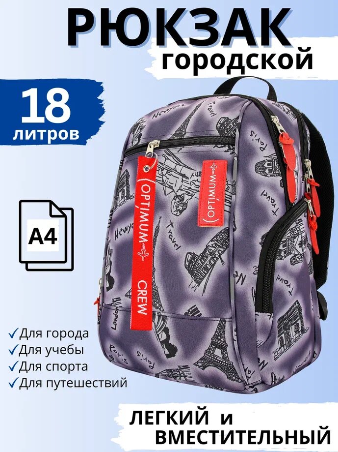 Рюкзак Optimum City 2 - отличный подарок на день рождение, 23 февраля, новый год, 8 марта, мальчику, девочке, мужчине, женщине, ребенку подростку. Стильный, модный, современный, яркий рюкзак - великолепный выбор для школы и города!