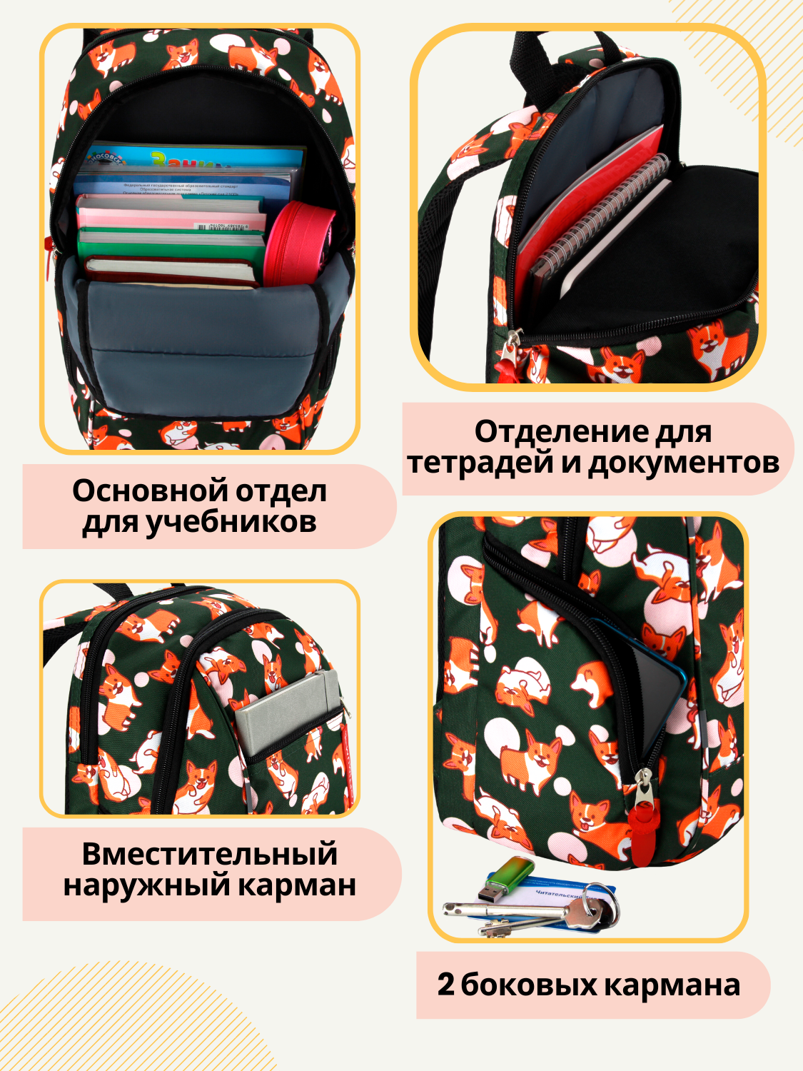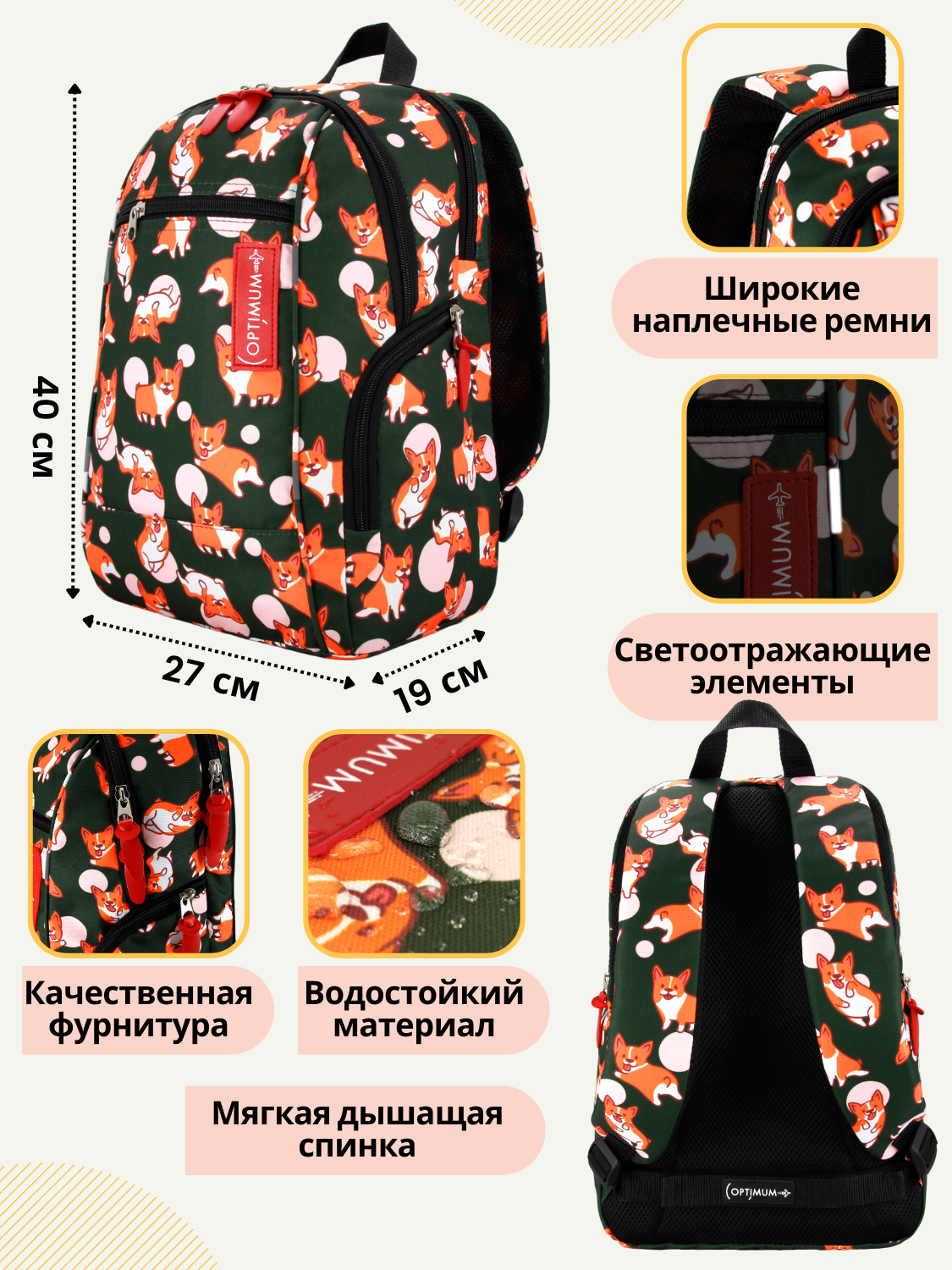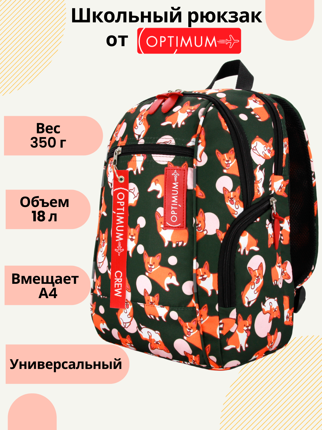 Школьный рюкзак Optimum City 2, корги - это стильный и функциональный аксессуар, который подойдет как для мальчиков, так и для девочек.