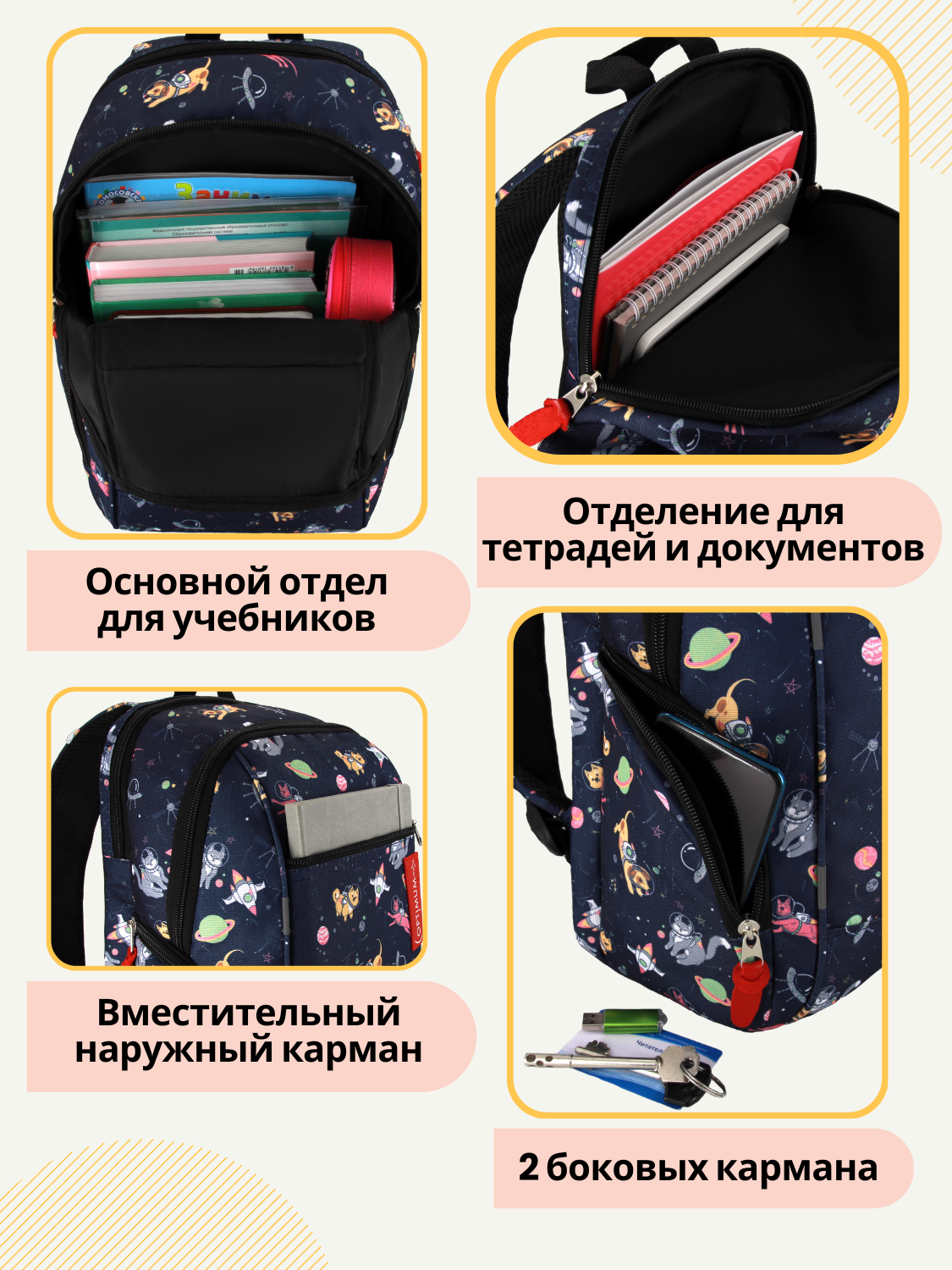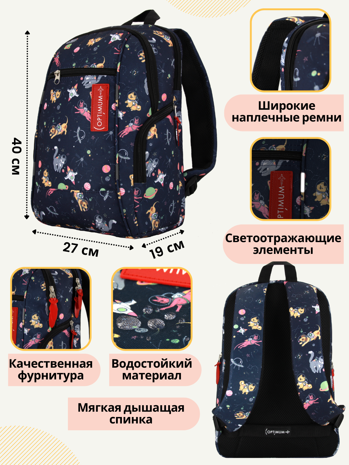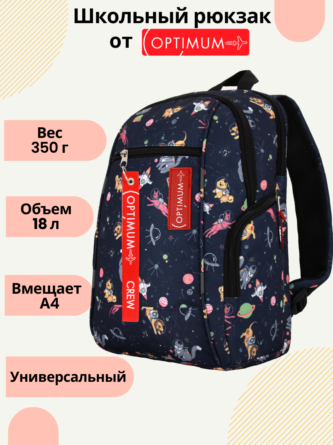 Школьный рюкзак Optimum City 2, космонавты - это стильный и функциональный аксессуар, который подойдет как для мальчиков, так и для девочек.