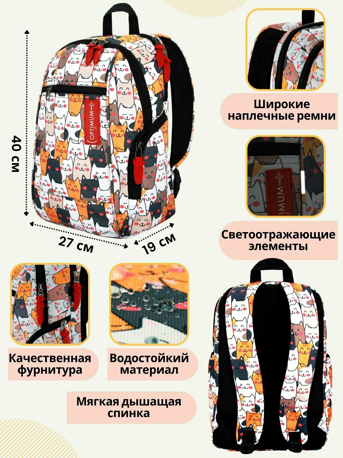 Школьный рюкзак Optimum City 2, котики - это стильный и функциональный аксессуар, который подойдет как для мальчиков, так и для девочек.