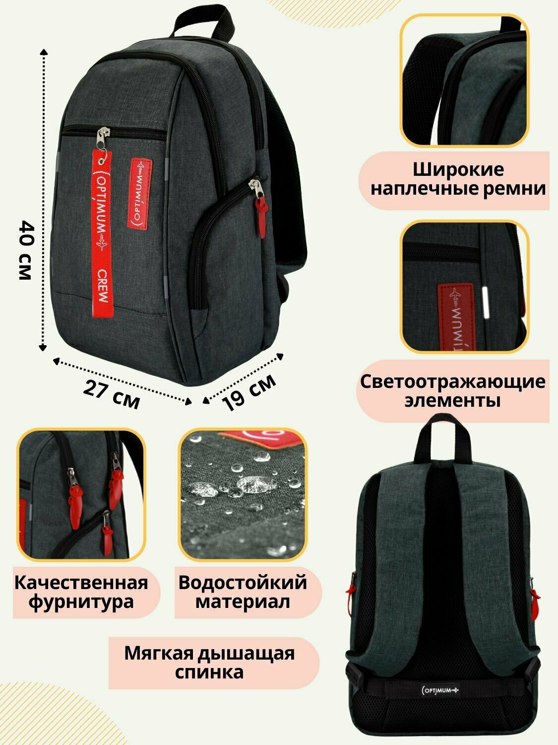 Школьный рюкзак Optimum City 2, темно-серый - это стильный и функциональный аксессуар, который подойдет как для мальчиков, так и для девочек.