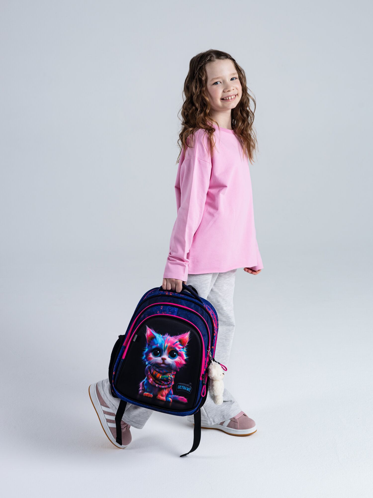 Купить Рюкзак школьный для девочки младшие классы, набор 5 в 1 (мешок, пенал, фартук) + брелок, SkyName (СкайНейм) с доставкой по всей России.