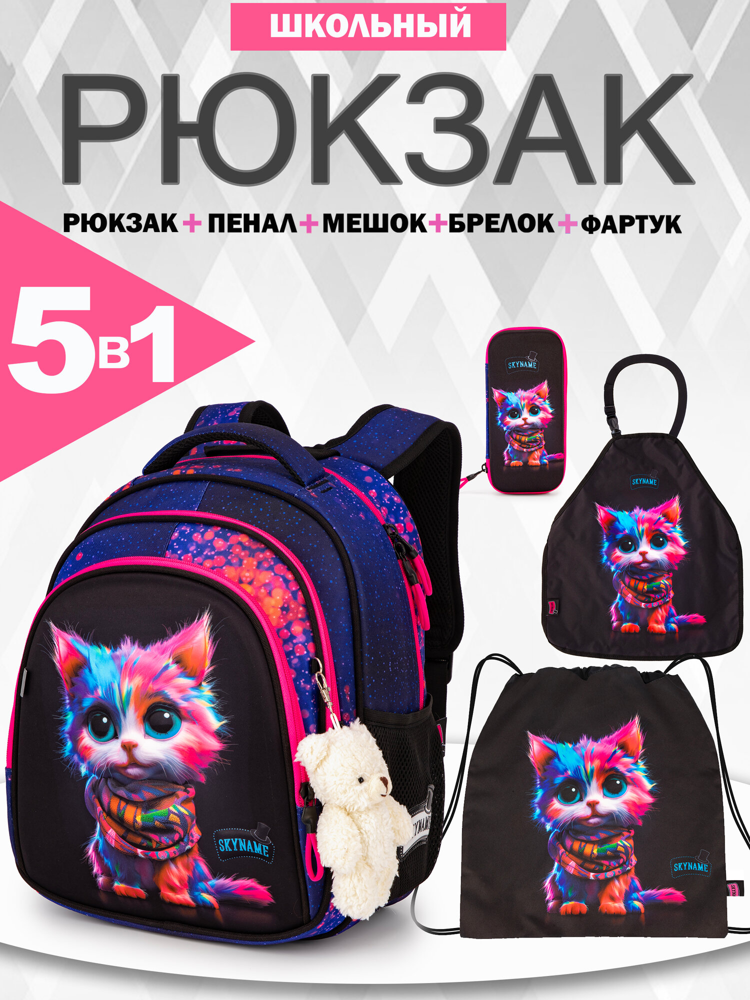 Рюкзак школьный для девочки младшие классы, набор 5 в 1 (мешок, пенал, фартук) + брелок, SkyName (СкайНейм): сравнение цен, характеристики, фото, актуальное наличие и цены.