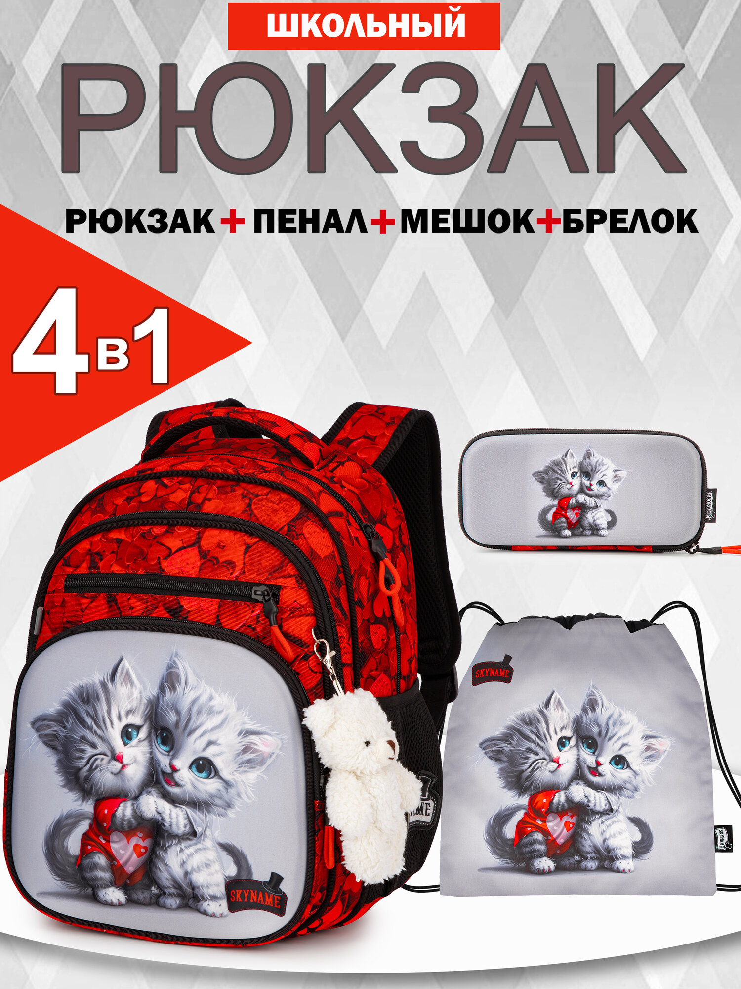 Купить Рюкзак школьный для девочки первоклассника, набор 4 в 1 (мешок, пенал) + брелок, SkyName (СкайНейм) с доставкой по всей России.