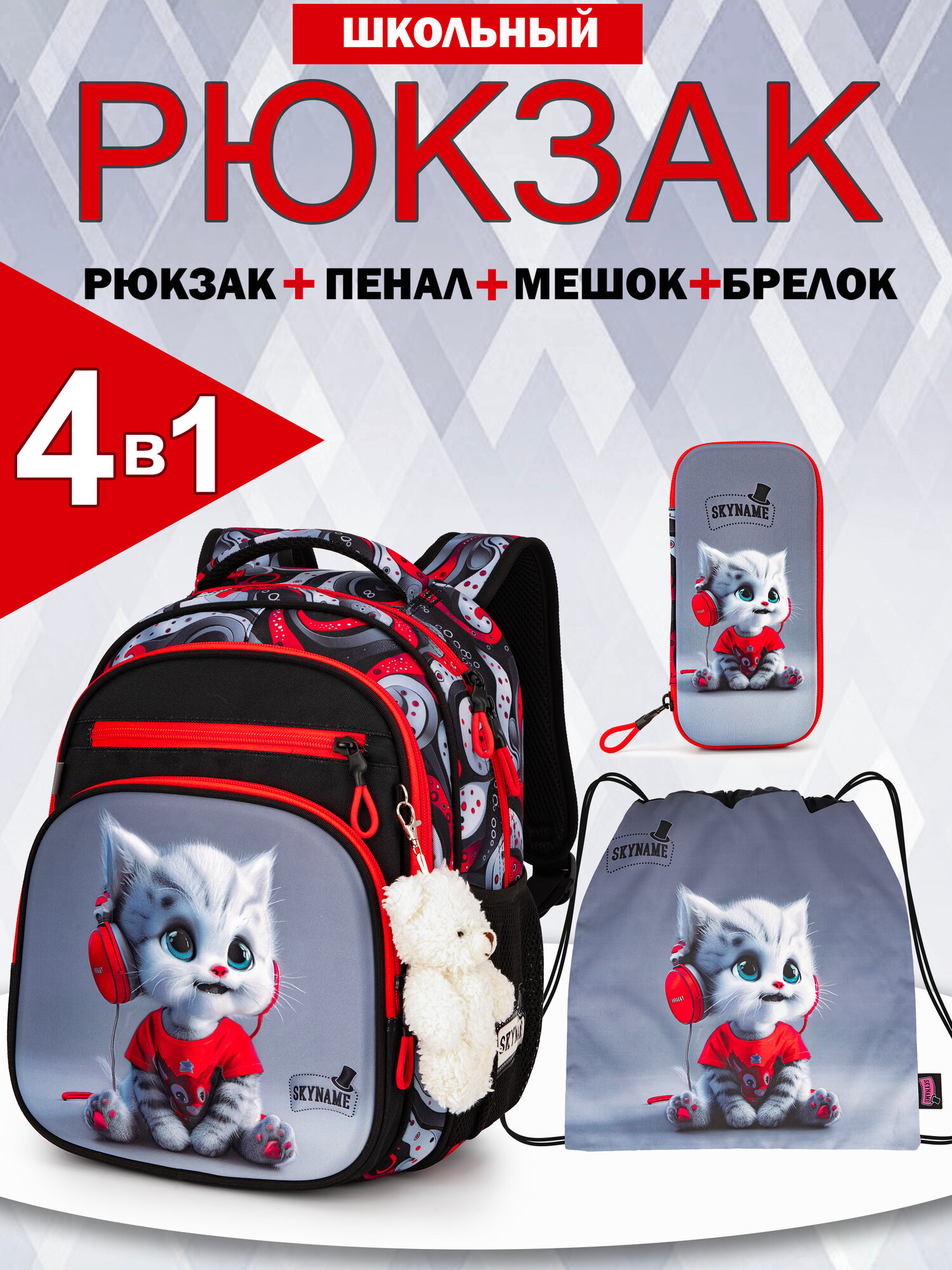 Рюкзак школьный для девочки первоклассника, набор 4 в 1 (мешок, пенал) + брелок, SkyName (СкайНейм): сравнение цен, характеристики, фото, актуальное наличие и цены.
