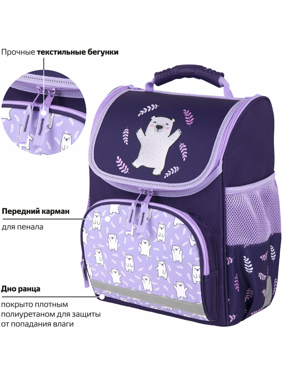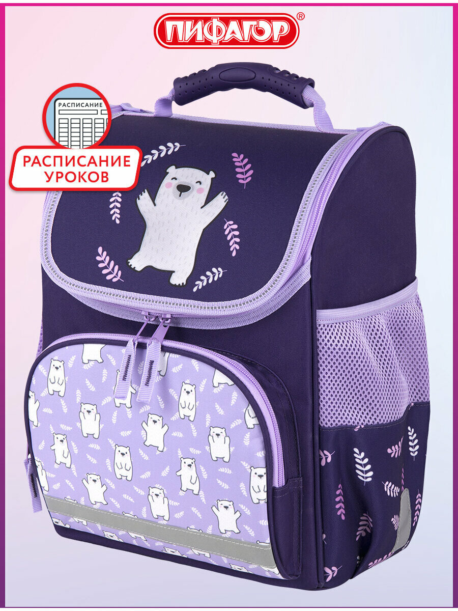 Купить Рюкзак школьный для девочки, портфель для первоклассницы ортопедический, ранец детский в школу, эргономичная спинка, 1 отделение, 3 кармана, Пифагор Happy Bear, 35х28х18 см, 272047 с доставкой по всей России.