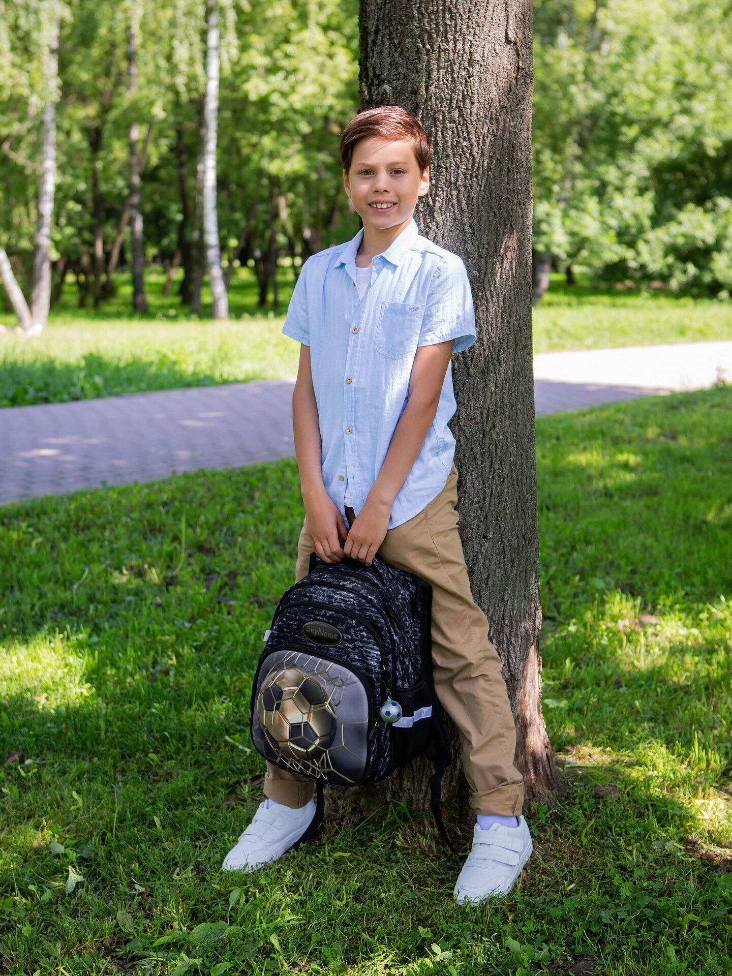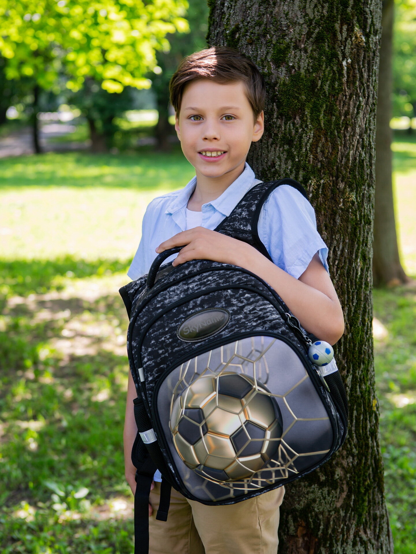 Купить Рюкзак школьный для мальчика 17 л с анатомической спинкой SkyName (СкайНейм), с мячиком на брелоке с доставкой по всей России.