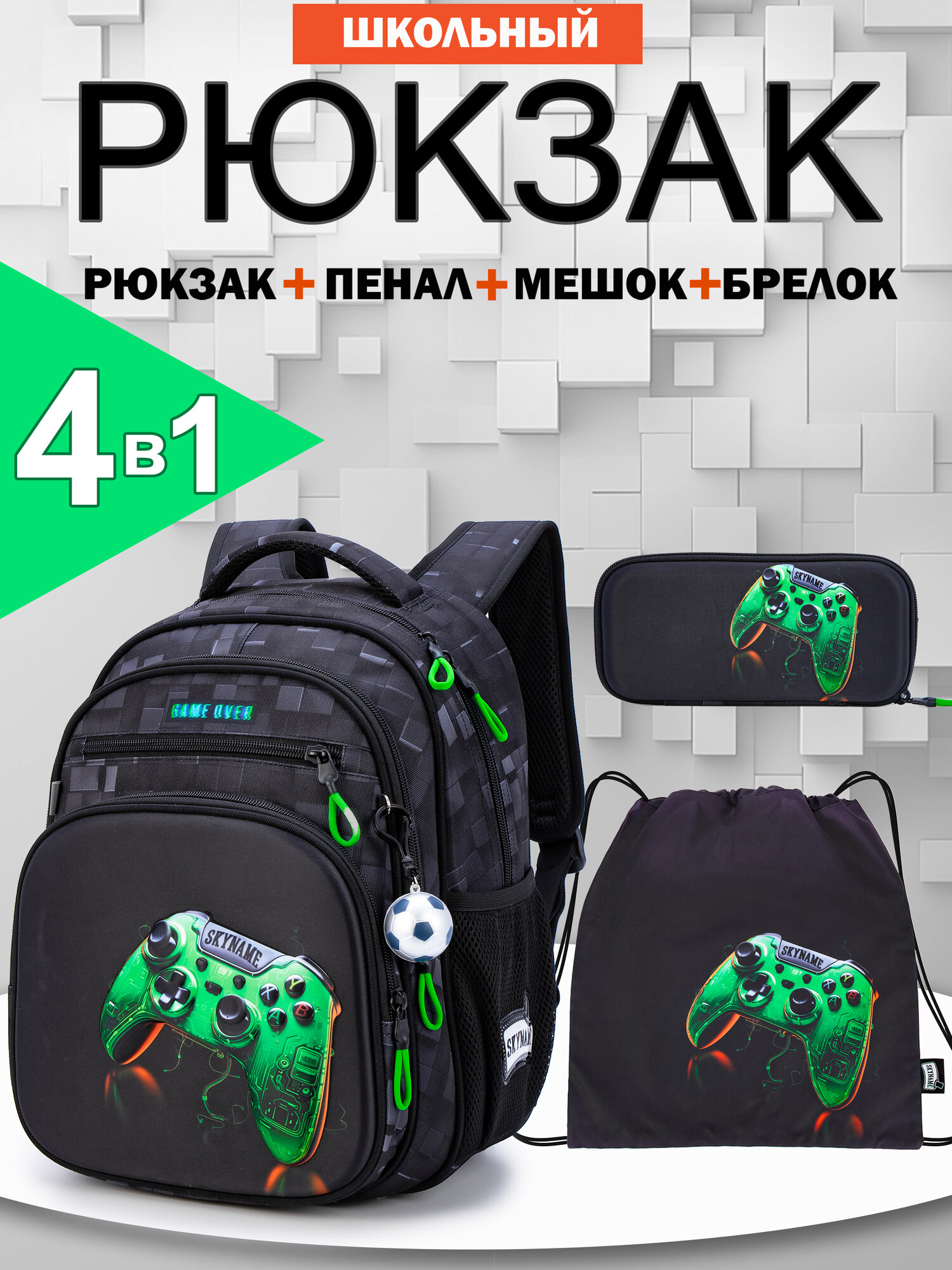 Купить Рюкзак школьный для мальчика младшие классы, набор 4 в 1 (мешок, пенал) + мячик, SkyName (СкайНейм) с доставкой по всей России.