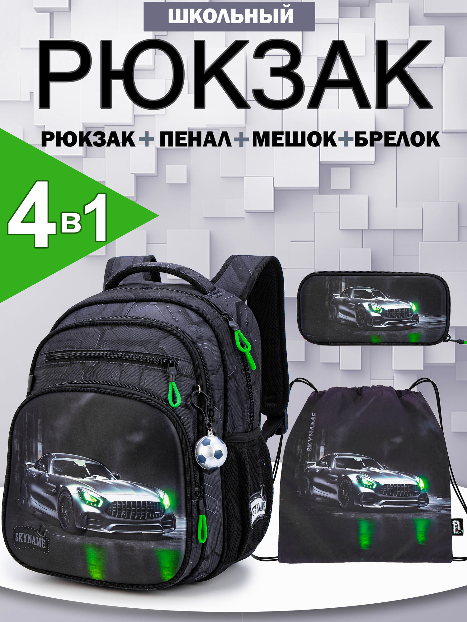 Купить Рюкзак школьный для мальчика начальной школы, набор 4 в 1 (мешок, пенал) + мячик, SkyName (СкайНейм) с доставкой по всей России.