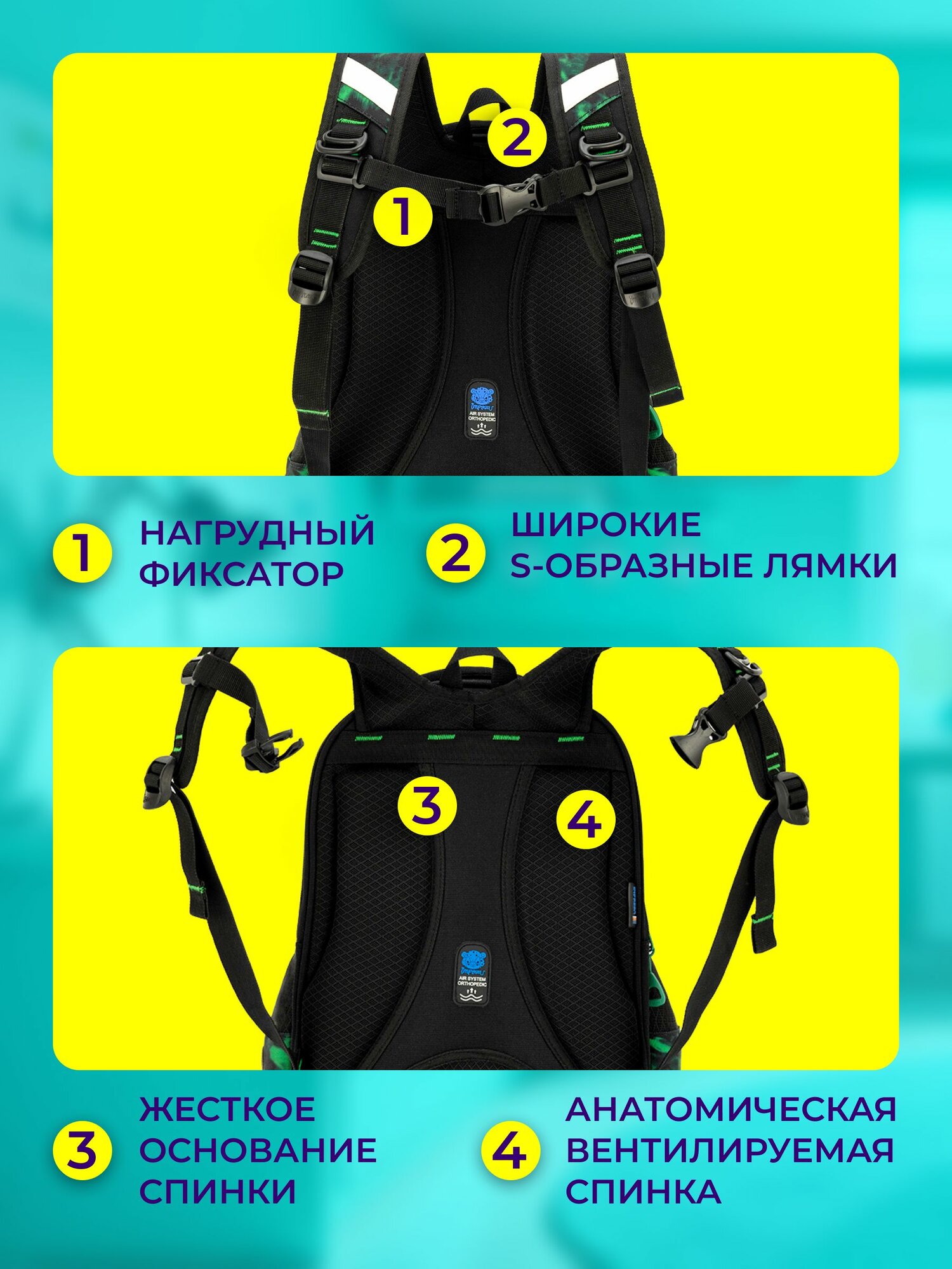 Рюкзак школьный для мальчиков, с ортопедической спинкой, ранец 3 отдела и светоотрожатели, набор 4 в 1, Impreza