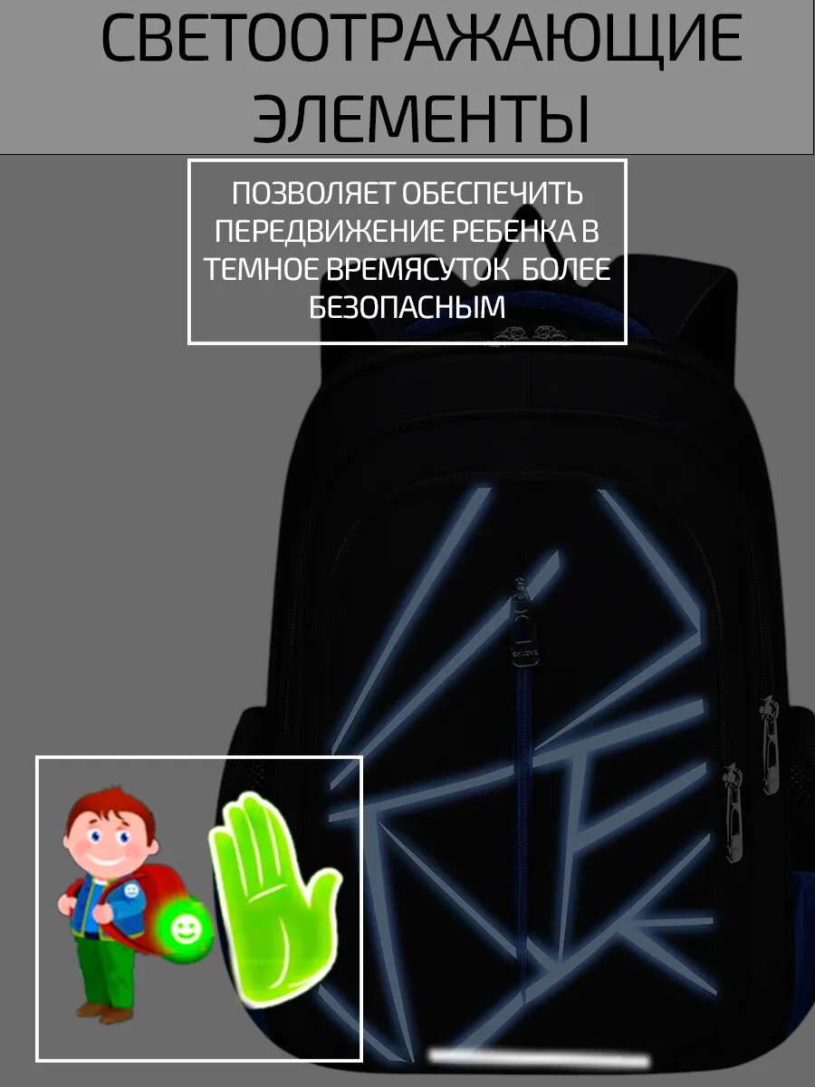 Купить Рюкзак школьный Evoline «Школа 2025», черный/синий, водонепроницаемый, эргономичный, 27л с доставкой по всей России.
