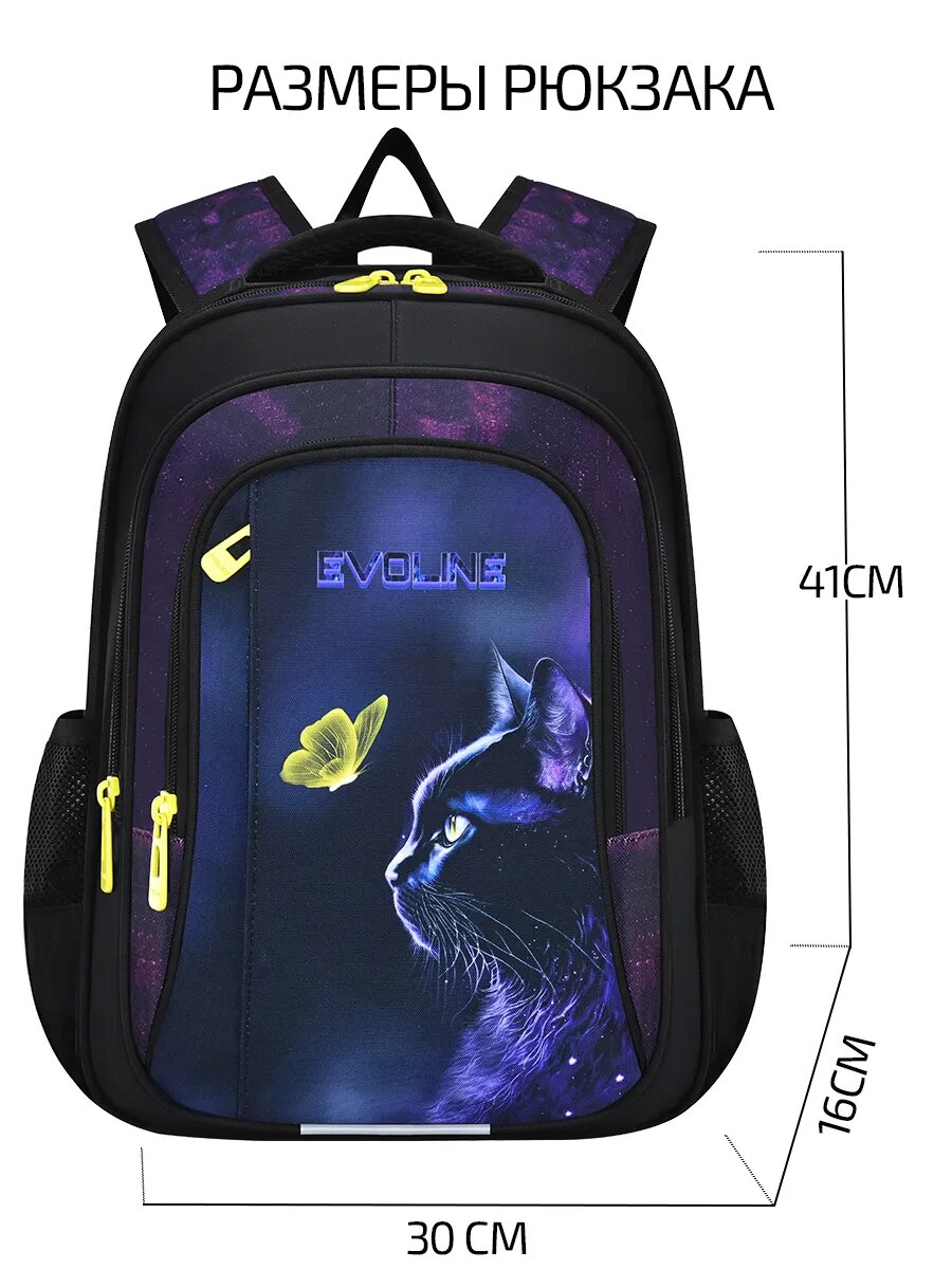 Рюкзак школьный Evoline «Школа 2025», для девочки, черный, фиолетовый, желтый: сравнение цен, характеристики, фото, актуальное наличие и цены.