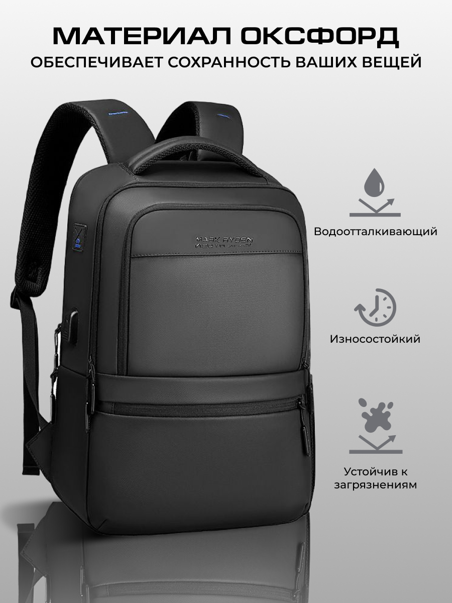Рюкзак городской от бренда Mark Ryden изготовлен из высокопрочного материала OXFORD, разработанного по специальной технологии. Он устойчив к воздействию влаги и грязи и обеспечивает сохранность ваших вещей от намокания. Теперь Вам не страшны ни дождь, ни снег, ни даже пролитая чашка кофе.