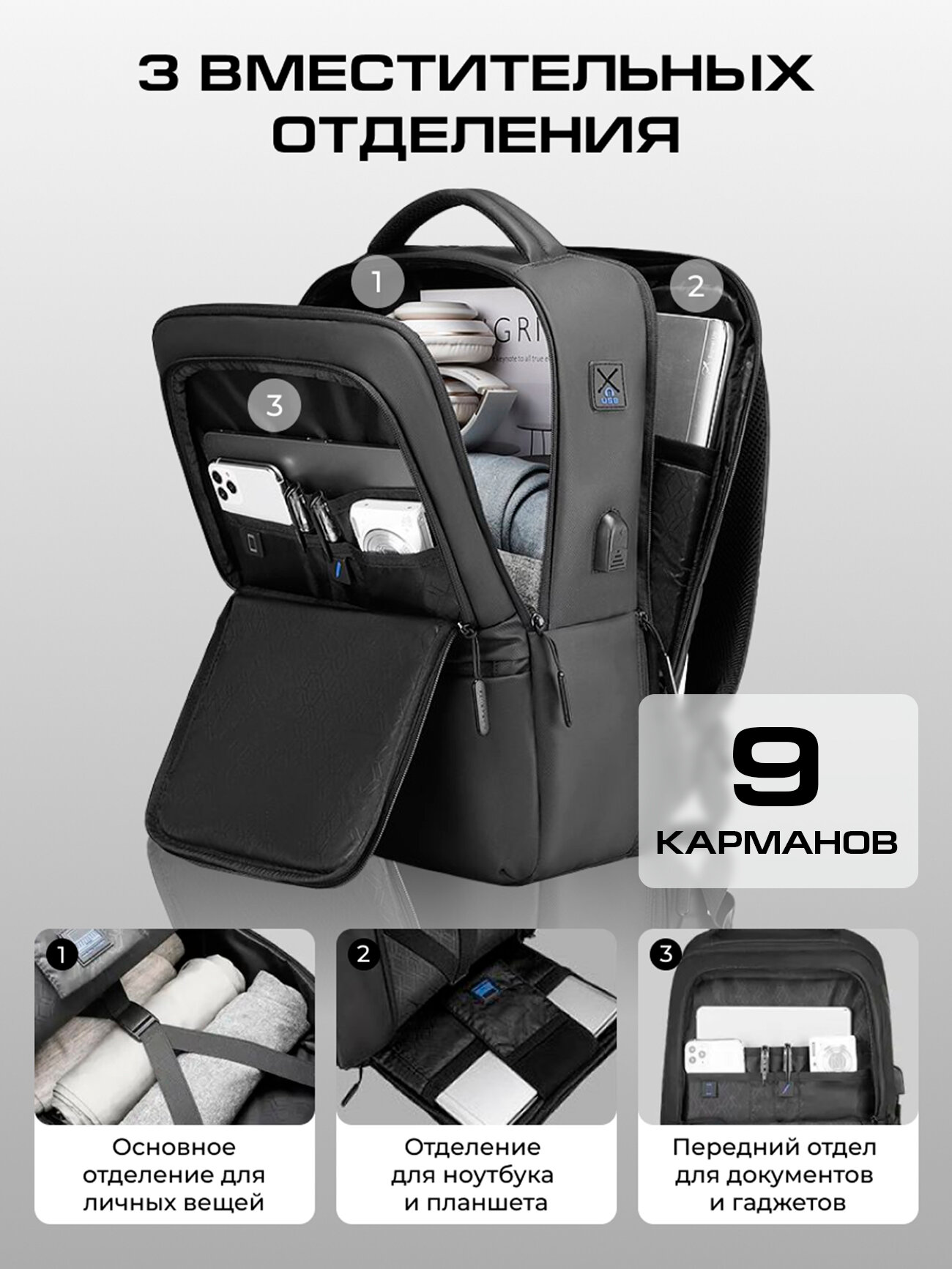 Размер сумки идеально подходит для ручной клади и соответствует габаритным требованиям большинства мировых авиакомпаний. Специальное отделение для ноутбука обеспечит быстрый доступ для проверки устройства на предполетном досмотре. Рюкзак оснащен специальной багажной лентой для легкого и комфортного путешествия.