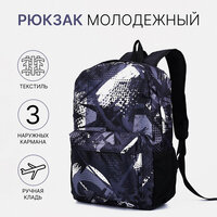 Купить Рюкзак школьный на молнии, с карманом, с абстрактным принтом, однотонный, размер 29×12×42 см, чёрный/серый с доставкой по всей России.