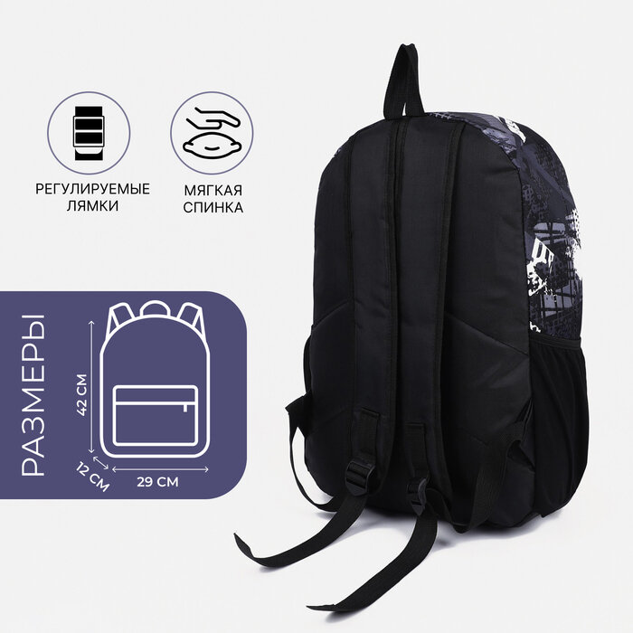Рюкзак школьный на молнии, с карманом, с абстрактным принтом, однотонный, размер 29×12×42 см, чёрный/серый: сравнение цен, характеристики, фото, актуальное наличие и цены.