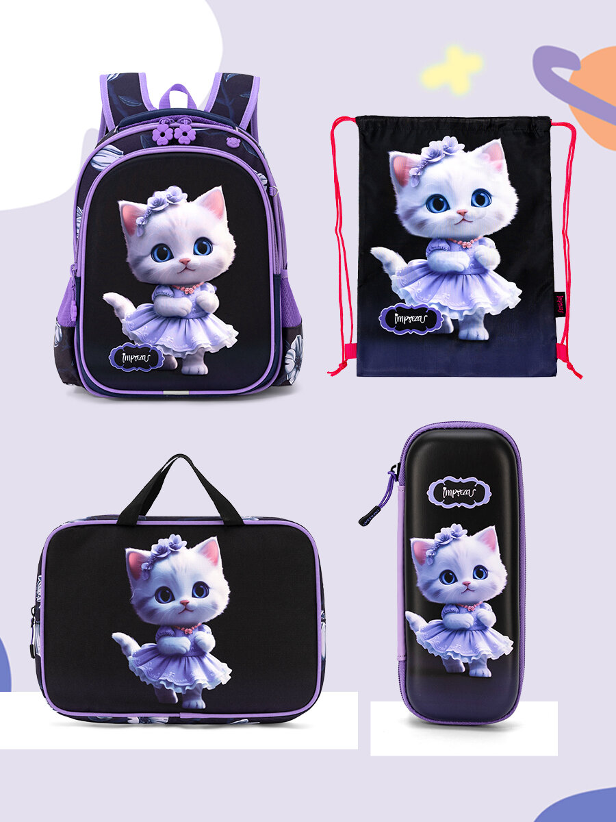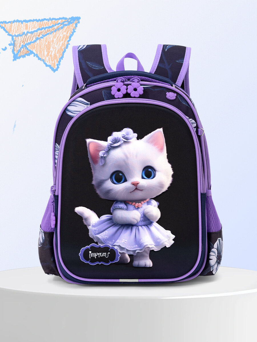Яркий детский школьный рюкзак для девочки с 3D рисунком, для школьников и подростков 1-6 классов! Лёгок и практичен в носке благодаря анатомической спинке и вентилируемым лямкам, мягкой ручке и дополнительной петле для подвешивания на крючок во время занятий. Два отделения, три кармашка - один спереди, два боковых, помещается формат А4. Ранец изготовлен из прочного водоотталкивающего материала, оснащен светоотражательными элементами, грудным фиксатором. Можно использовать как дошкольный портфель (до первого класса) и альтернатива рюкзакам-трансформерам, сумке для школы. И конечно же лямочка для крепления брелка, в карточке товара на фото изображен мешок и пенал входящий в комплект. Четко, стильно, ёмко, всё в Impreza для ребёнка!