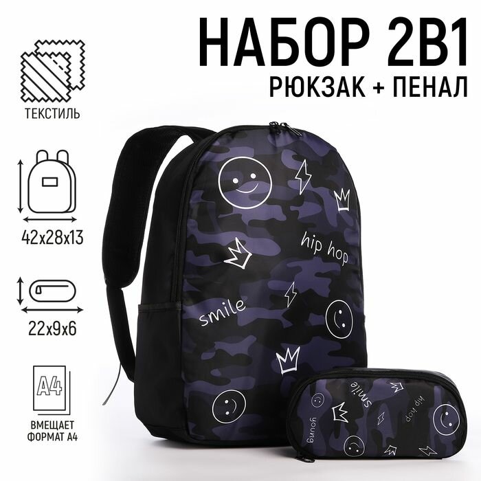 Купить Рюкзак школьный с пеналом Hip-Hop, 42х28х13 см, цвет чёрный с доставкой по всей России. Рюкзак школьный с пеналом Hip-Hop, 42х28х13 см, цвет чёрный: сравнение цен, характеристики, фото, актуальное наличие и цены.