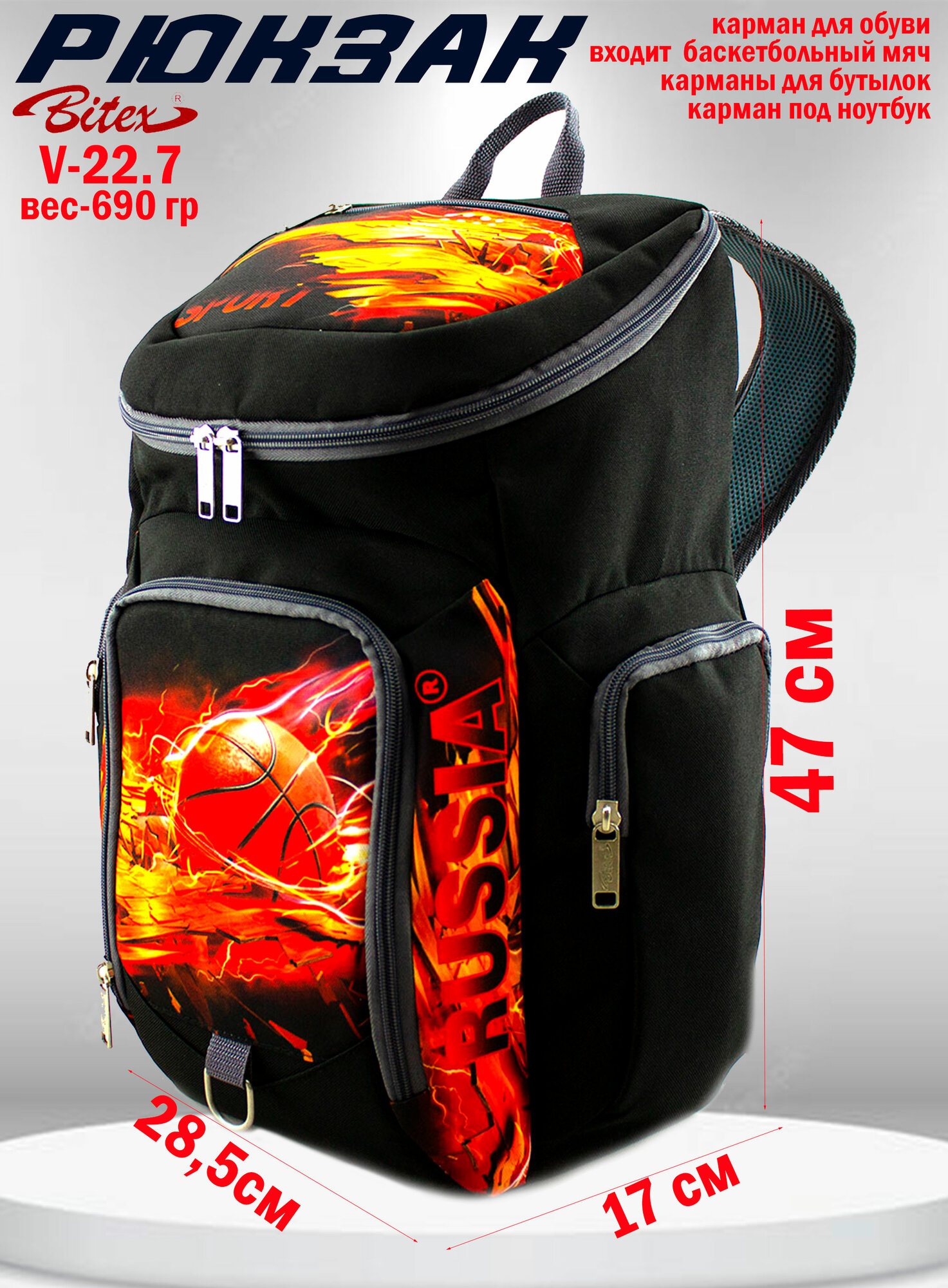 Рюкзак спортивный баскетбольный BITEX 28-121 с карманом для обуви, черный п. э.: сравнение цен, характеристики, фото, актуальное наличие и цены.