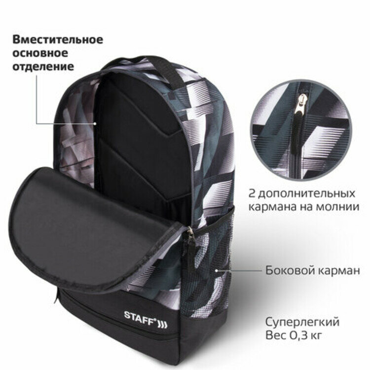Рюкзак STAFF STRIKE универсальный, 3 кармана, черно-серый, 45х27х12 см, 270784: сравнение цен, характеристики, фото, актуальное наличие и цены.