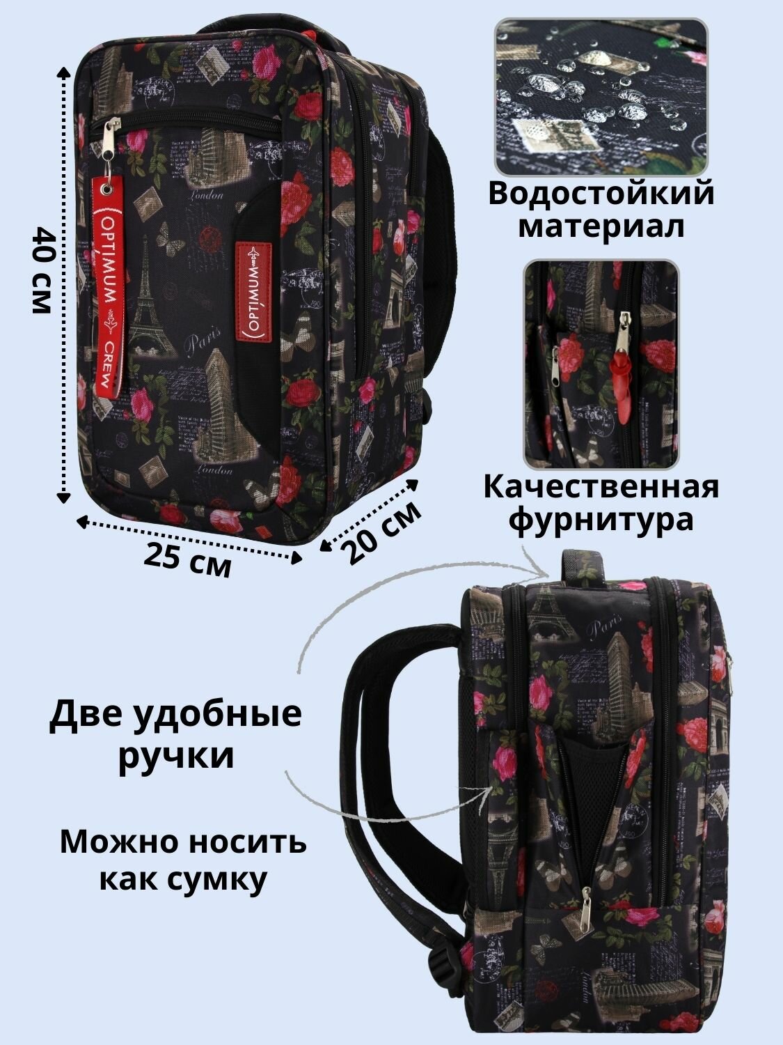 Купить Рюкзак сумка дорожная ручная кладь 40х25х20 в самолет Ryanair, цветы с доставкой по всей России. Рюкзак сумка дорожная ручная кладь 40х25х20 в самолет Ryanair, цветы: сравнение цен, характеристики, фото, актуальное наличие и цены.