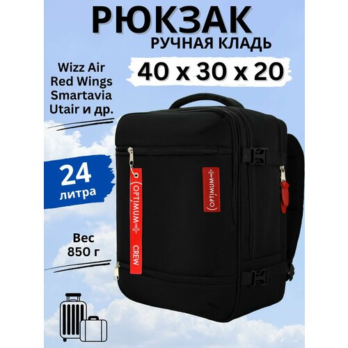 Рюкзак для путешествий дорожный ручная кладь 40х30х20 Wizz Air RL, черный - большой, вместительный, влагозащитный рюкзак для путешествий, деловых поездок, в отпуск и на море объемом 24 литра. Рюкзак чемодан разработан под бесплатные габариты ручной клади 40*30*20 в самолет авиакомпаний Red Wings, Smartavia, Utair и др. Рюкзак 40х30х20 см. унисекс - подойдет мужчине, женщине, подростку, детям и взрослым. Wizz Air - рюкзак для туризма, повседневный городской для прогулок по городу, спортивный рюкзак, сумка дорожная, сумка для фитнеса. Сумка дорожная чемодан с карманом со стороны спины - система антивор - сохранит ваши документы и деньги в безопасности. Рюкзак можно использовать как рюкзак для ноутбука 15.6 дюйма. Отделение - карман для ноутбука планшета с диагональю до 18 дюймов или документов формата A4. Так же можно использовать как туристический рюкзак, дорожный, мужской, женский, детский, повседневный, городской, для туризма, прогулок по городу или как спортивная сумка для фитнеса. У рюкзака для ручной клади для размещения в калибратор 40 30 20 есть две удобные ручки сверху и сбоку. Облегченная модель рюкзака, анатомическая спинка, боковые регулируемые ремни и 2 мягкие лямки обеспечат комфорт в дороге. Дорожный рюкзак в самолет Optimum Wizz Air - стильный, яркий, надежный аксессуар - отличный подарок другу, подруге, коллеге, для мужчин и женщин. Optimum - ваш верный друг в дороге!