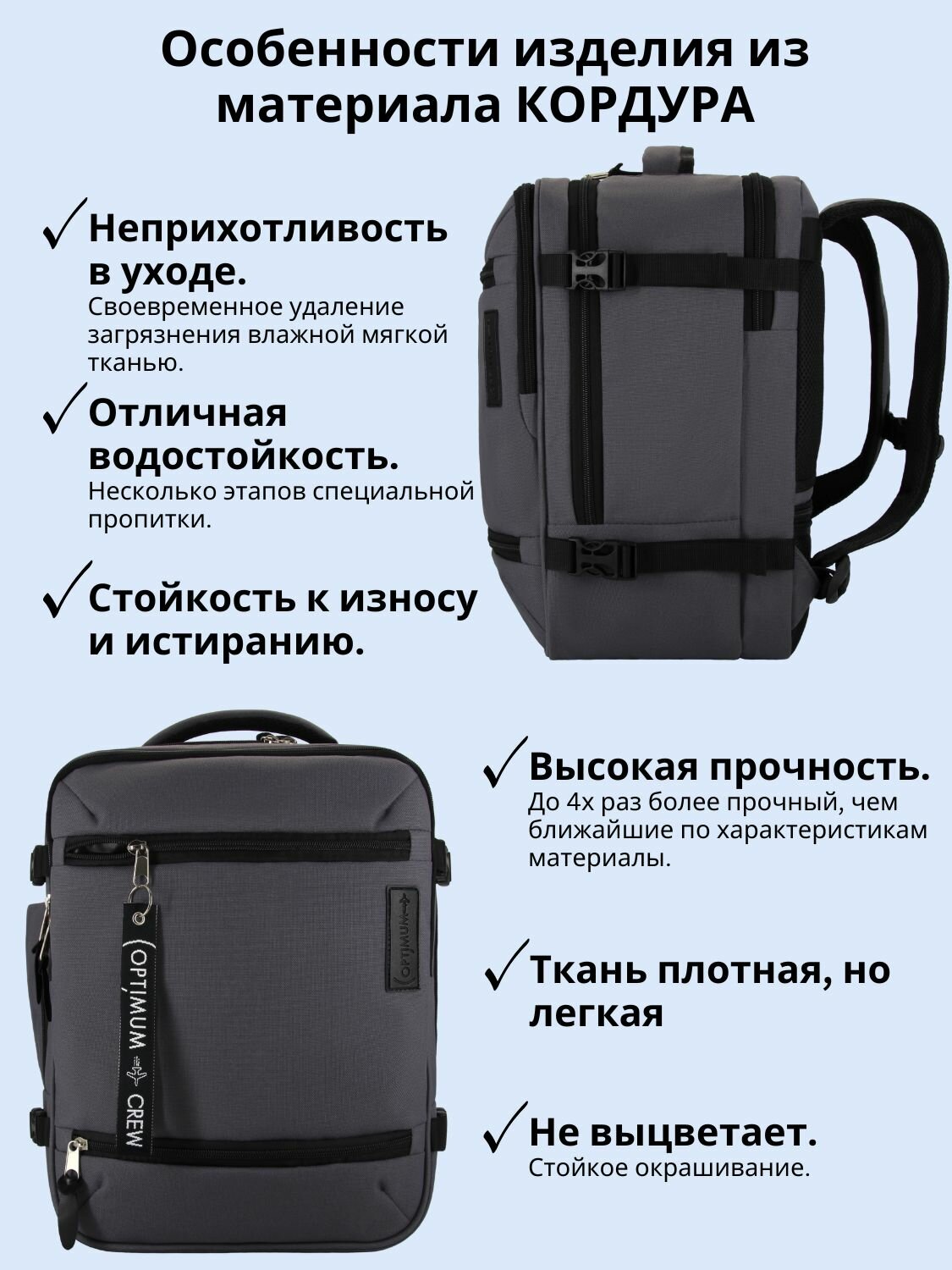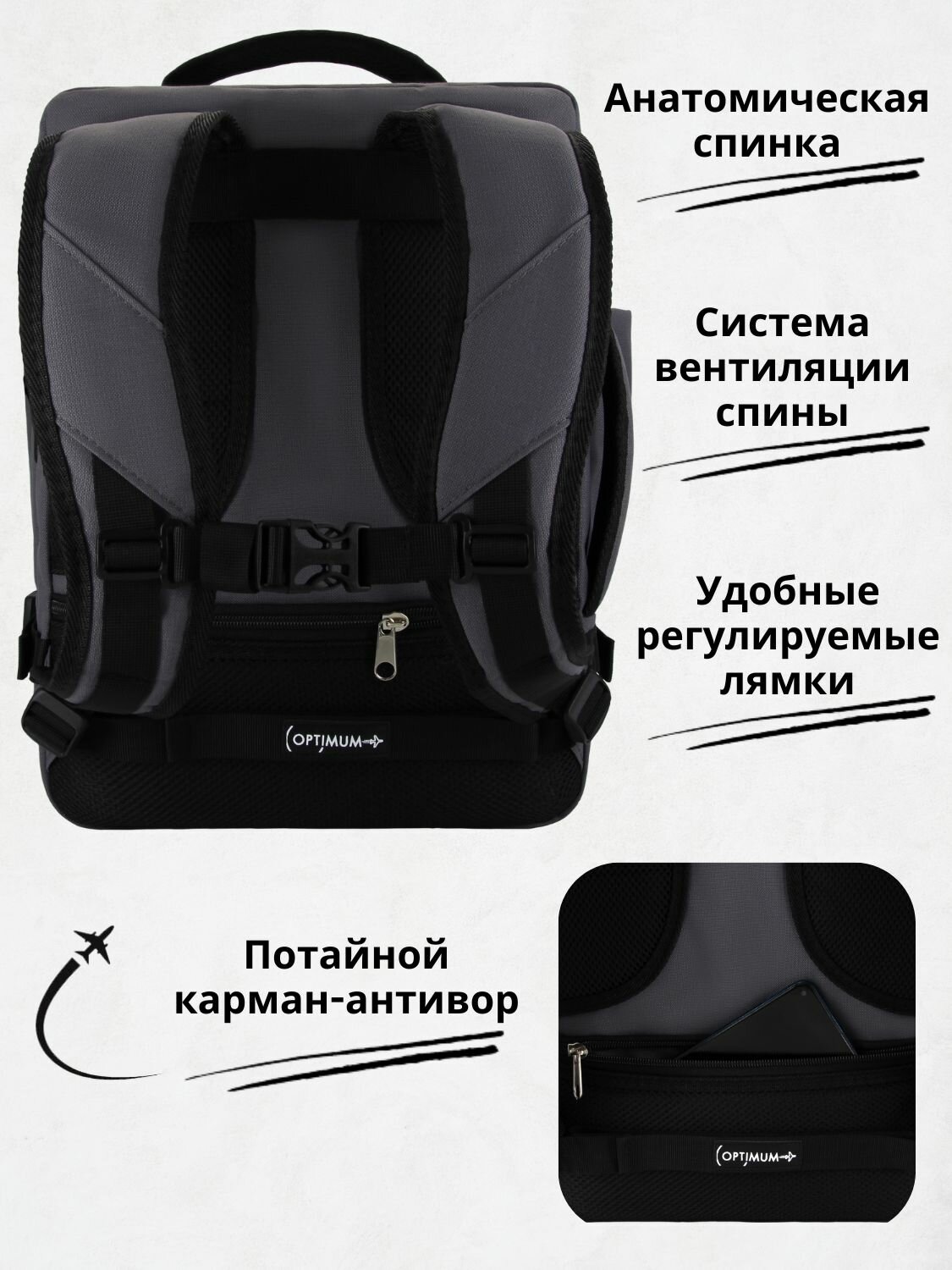 Рюкзак для путешествий дорожный ручная кладь 40х30х20 Wizz Air RL, кордура серый - большой, вместительный, влагозащитный рюкзак для путешествий, деловых поездок, в отпуск и на море объемом 24 литра. Рюкзак чемодан разработан под бесплатные габариты ручной клади 40*30*20 в самолет авиакомпаний Red Wings, Smartavia, Utair и др. Рюкзак 40х30х20 см. унисекс - подойдет мужчине, женщине, подростку, детям и взрослым. Wizz Air - рюкзак для туризма, повседневный городской для прогулок по городу, спортивный рюкзак, сумка дорожная, сумка для фитнеса. Сумка дорожная чемодан с карманом со стороны спины - система антивор - сохранит ваши документы и деньги в безопасности. Рюкзак можно использовать как рюкзак для ноутбука 15.6 дюйма. Отделение - карман для ноутбука планшета с диагональю до 18 дюймов или документов формата A4. Так же можно использовать как туристический рюкзак, дорожный, мужской, женский, детский, повседневный, городской, для туризма, прогулок по городу или как спортивная сумка для фитнеса. У рюкзака для ручной клади для размещения в калибратор 40 30 20 есть две удобные ручки сверху и сбоку. Облегченная модель рюкзака, анатомическая спинка, боковые регулируемые ремни и 2 мягкие лямки обеспечат комфорт в дороге. Дорожный рюкзак в самолет Optimum Wizz Air - стильный, яркий, надежный аксессуар - отличный подарок другу, подруге, коллеге, для мужчин и женщин. Optimum - ваш верный друг в дороге!