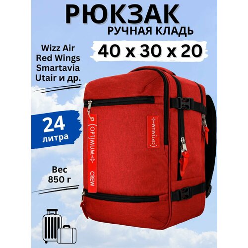Рюкзак для путешествий дорожный ручная кладь 40х30х20 Wizz Air RL, красный - большой, вместительный, влагозащитный рюкзак для путешествий, деловых поездок, в отпуск и на море объемом 24 литра. Рюкзак чемодан разработан под бесплатные габариты ручной клади 40*30*20 в самолет авиакомпаний Red Wings, Smartavia, Utair и др. Рюкзак 40х30х20 см. унисекс - подойдет мужчине, женщине, подростку, детям и взрослым. Wizz Air - рюкзак для туризма, повседневный городской для прогулок по городу, спортивный рюкзак, сумка дорожная, сумка для фитнеса. Сумка дорожная чемодан с карманом со стороны спины - система антивор - сохранит ваши документы и деньги в безопасности. Рюкзак можно использовать как рюкзак для ноутбука 15.6 дюйма. Отделение - карман для ноутбука планшета с диагональю до 18 дюймов или документов формата A4. Так же можно использовать как туристический рюкзак, дорожный, мужской, женский, детский, повседневный, городской, для туризма, прогулок по городу или как спортивная сумка для фитнеса. У рюкзака для ручной клади для размещения в калибратор 40 30 20 есть две удобные ручки сверху и сбоку. Облегченная модель рюкзака, анатомическая спинка, боковые регулируемые ремни и 2 мягкие лямки обеспечат комфорт в дороге. Дорожный рюкзак в самолет Optimum Wizz Air - стильный, яркий, надежный аксессуар - отличный подарок другу, подруге, коллеге, для мужчин и женщин. Optimum - ваш верный друг в дороге!