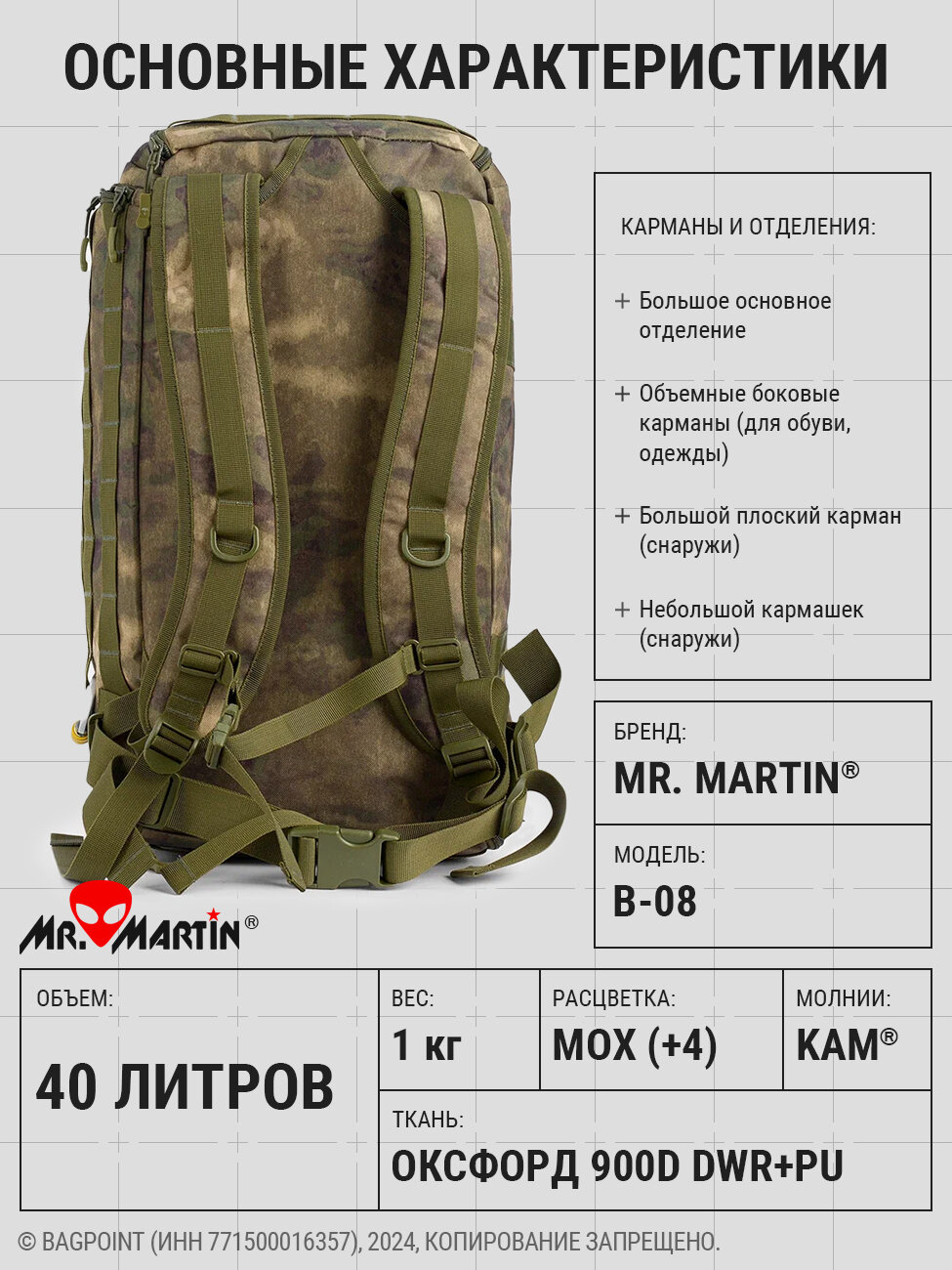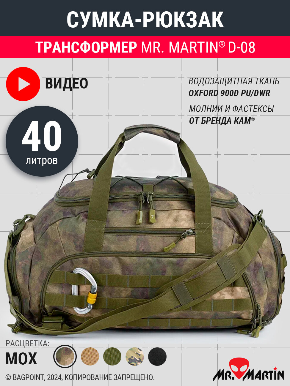 Сумка-рюкзак (трансформер) Mr. Martin (Мистер Мартин) Д-08 в расцветке "Мох". Объем около 42 литров. Данная модель является увеличенной и доработанной версией модели D-07.