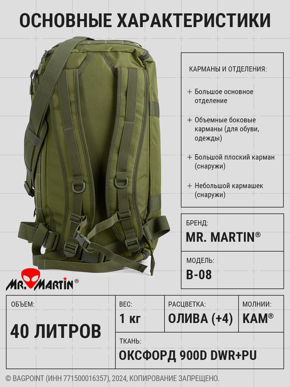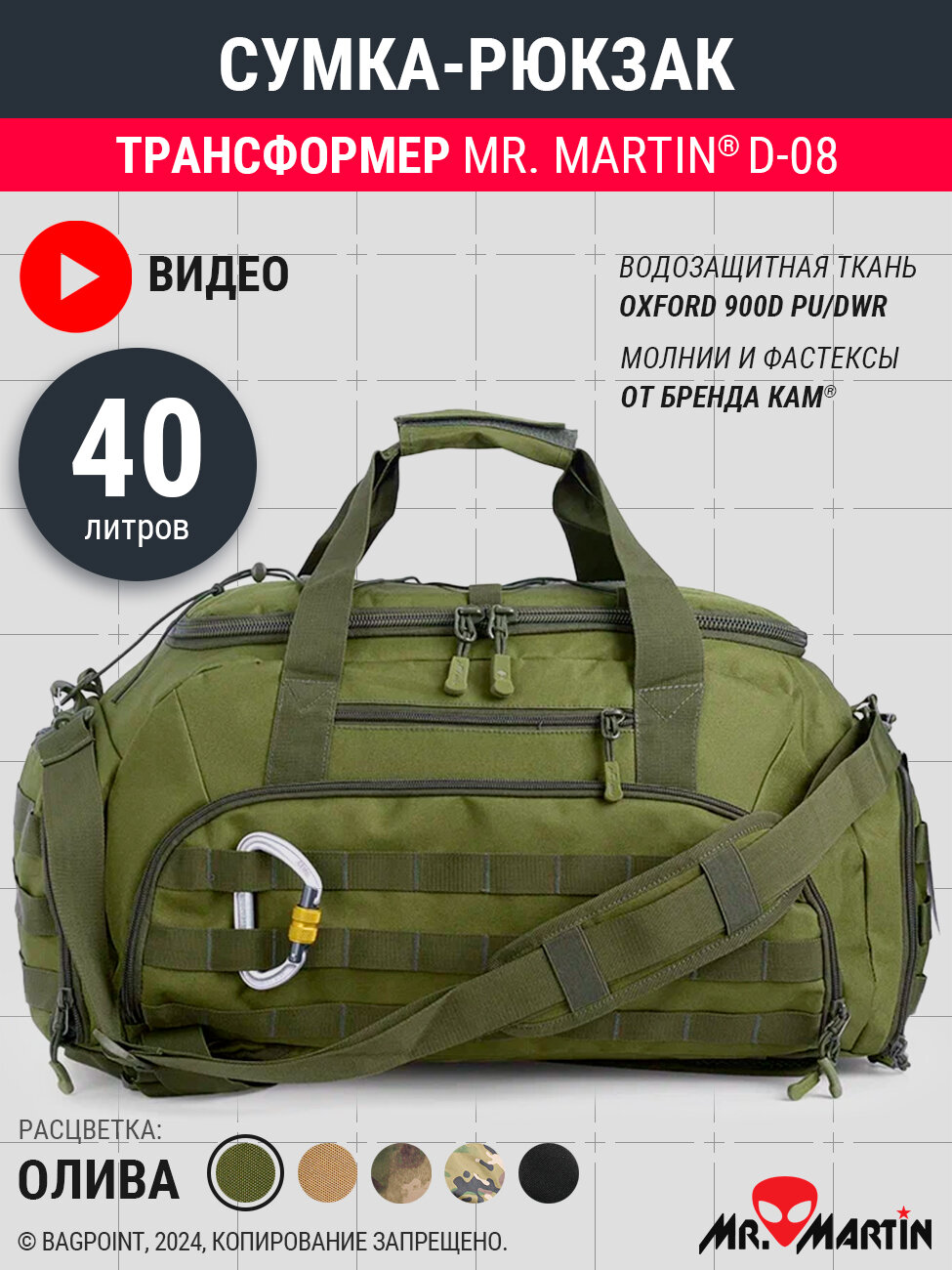 Сумка-рюкзак (трансформер) Mr. Martin (Мистер Мартин) Д-08 в расцветке "Олива". Объем около 42 литров. Данная модель является увеличенной и доработанной версией модели D-07.
