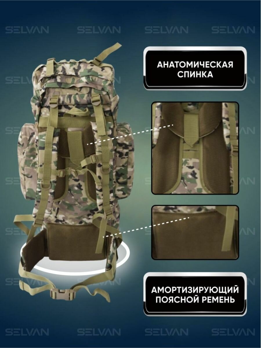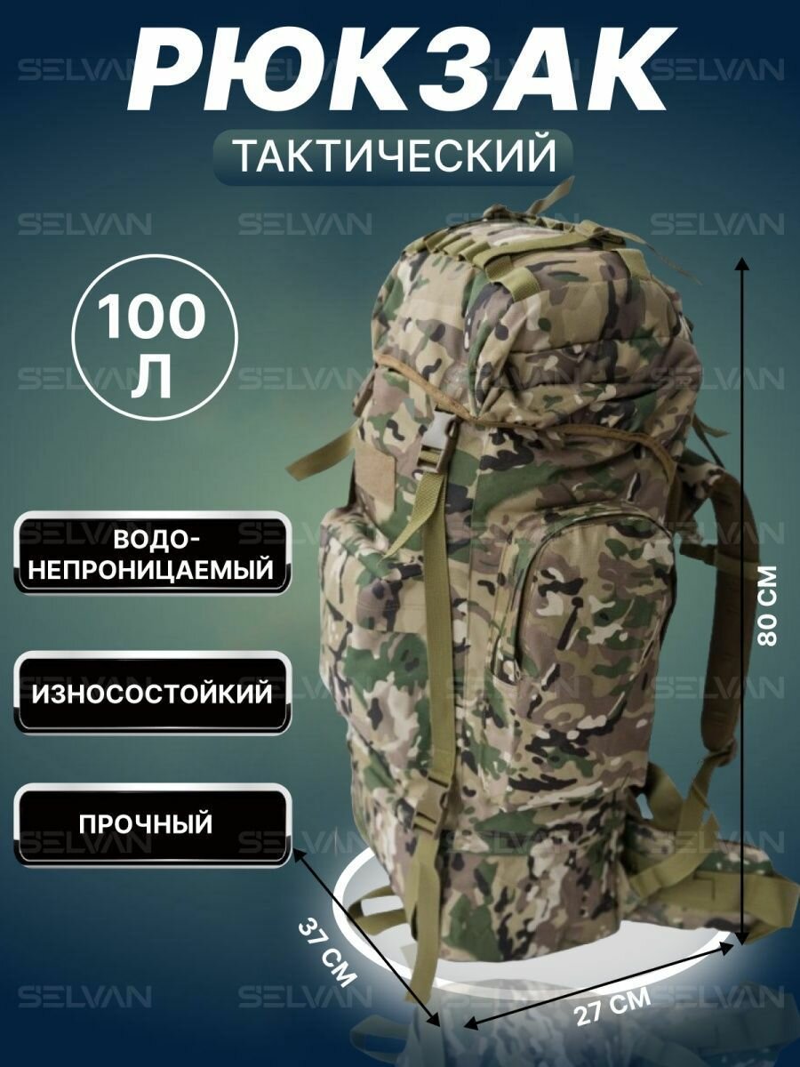 Рюкзак тактический рамный 100 +10 литров - большой и вместительный объем. Изготовлен из высококачественной нейлоновой ткани Оксфорд 1000D. Вам безусловно понравится плотность и качество ткани. Рюкзак туристический- многофункциональный большой рюкзак из прочной и износостойкой ткани. Рюкзак мужской тактический используется для походов, охоты и рыбалка дается намного легче, если использовать военный рюкзак / армейский рюкзак с камуфляжем. Рюкзак милитари сделан из износостойкой и водонепроницаемой ткани. Огромное удобство создает мягкое поясное крепление, сопротивление разрыву,водонепроницаемость и множество удобных карманов. Подходит для всех наружных условий. Сильной стороной данного рюкзака является удобство и комфорт .