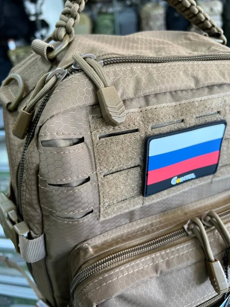 • Дно рюкзака влагозащищенное, имеет усиленный наружный защитный слой нейлона, ячейки системы Молле и металлический дренажный люверс;